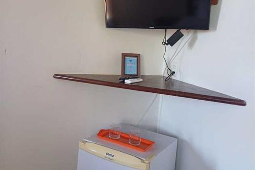 Este quarto contem Wi-fi, ar-condicionado, TV, telefone, frigobar, secador e varanda coletiva. O banheiro privativo conta com chuveiro de ág...