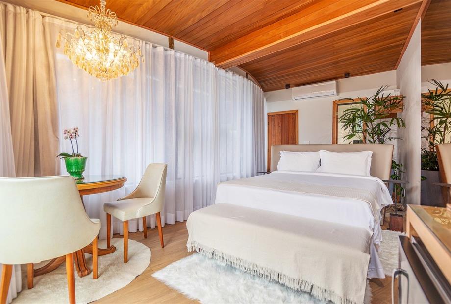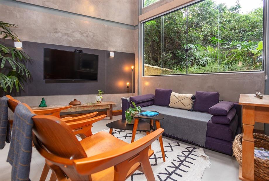 Conheça a elegância desse quarto! No quarto Studio, você se sentirá abraçado pela floresta natural a ser contemplada através das enormes jan...