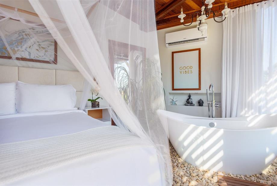 Nosso quarto Namaste é a opção ideal para os que buscam um ambiente zen sem abrir mão do luxo. Acomoda dois hóspedes em uma atmosfera intimi...