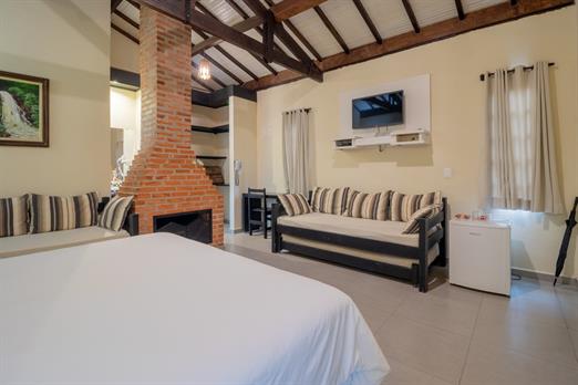 Sua viagem merece uma suíte como esta, ampla, com conforto, privacidade. Equipado com cama box e sofá cama, Lareira e aquecimento solar, ar...