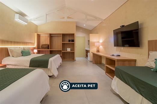 Cortesia na hospedagem para uma criança de até 12 anos acompanhada de pelo menos 2 adultos pagantes.