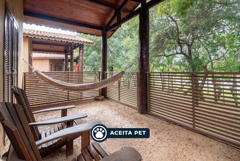 Modernos chalés com uma vista indescritível para o nosso lago. Acomodações térreas que permitem PET, contam com estacionamento privativo, co...