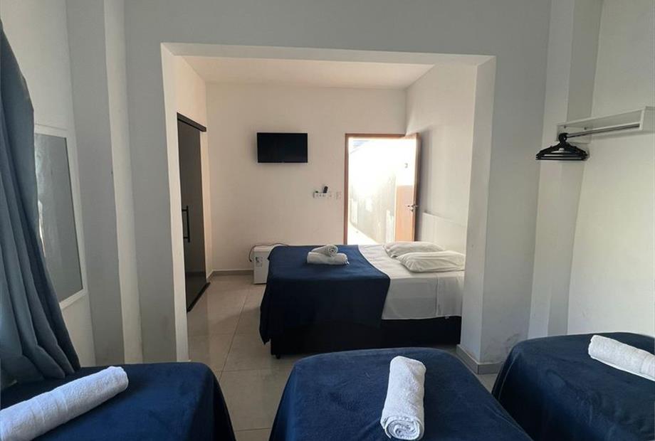 Suíte ampla para toda a família, com uma cama de casal e três de solteiro, equipada com ar-condicionado, TV smart e frigobar. Fácil acesso,...