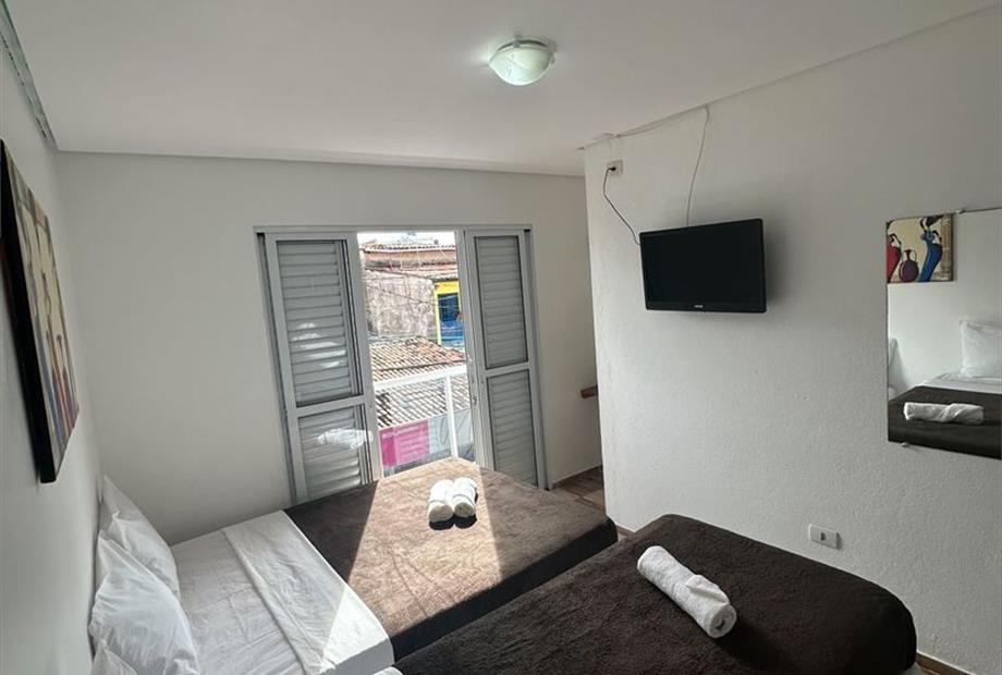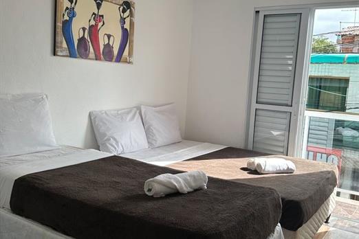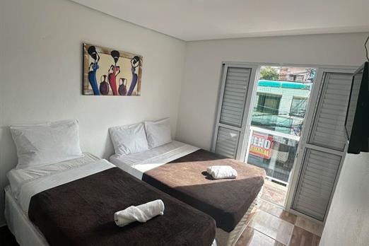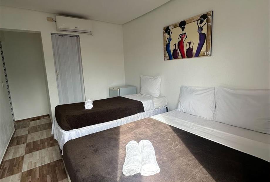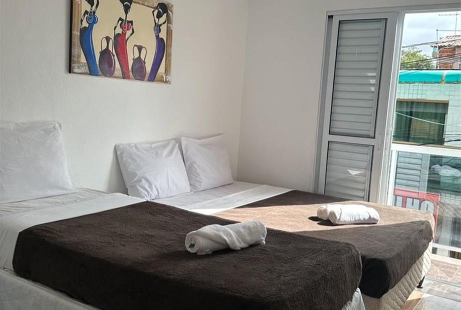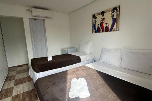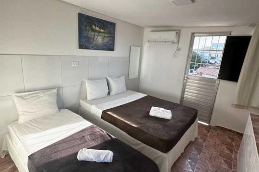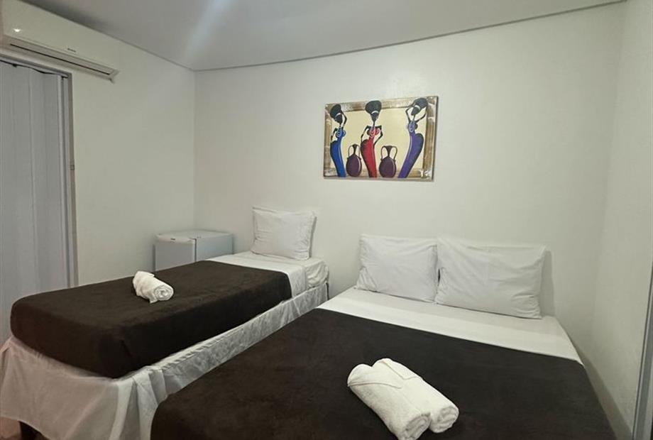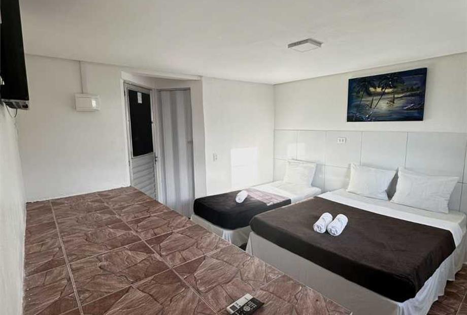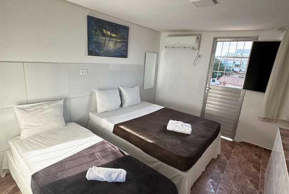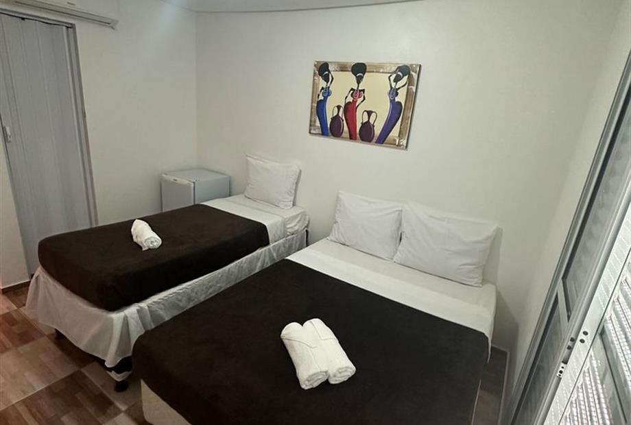 - Quarto apenas para 3 pessoas. - Localizados no 1º, 2º e 3º andar. - Apenas 1 cama de casal e 1 cama de solteiro (ambas box), tamanho padrã...