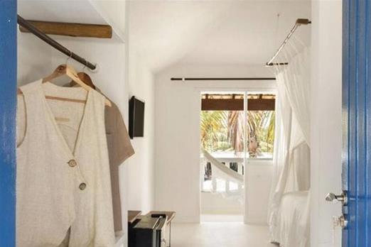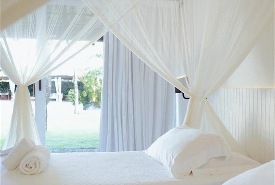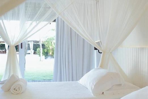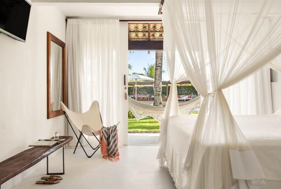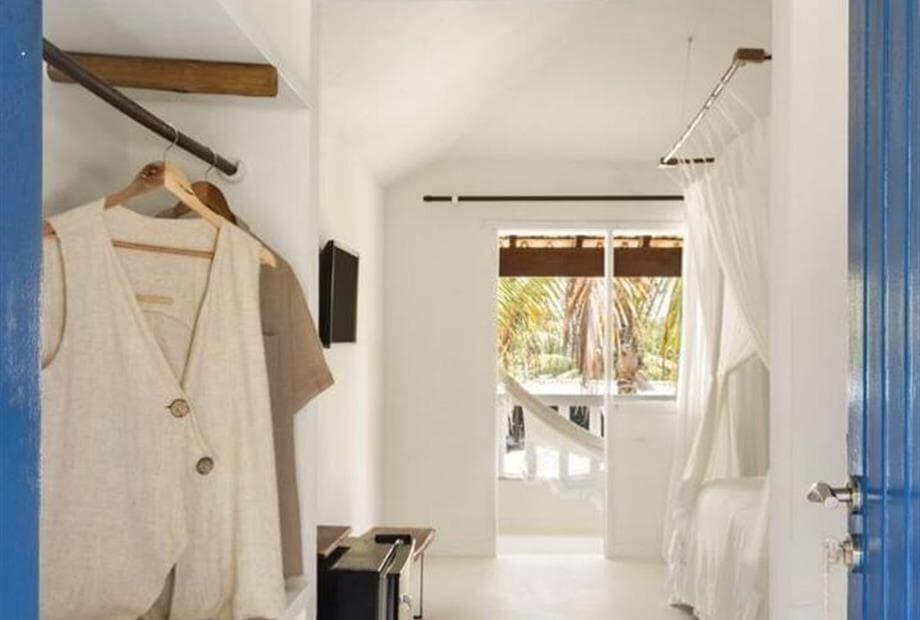 Possui pé direito alto, piso de cimento branco e decoração clean com peças de design e artesanato brasileiro., a suíte tem 30 m2, e a cama k...