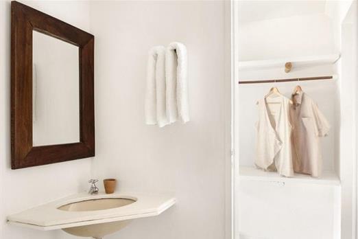 A Suíte Vila está localizada em um prédio anexo à pousada e oferece uma charmosa decoração rústica, com toques em azul e verde sobre fundo b...