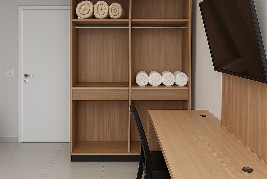 Hóspedes que realizarem uma reserva com mais de uma diária, tem direito ao serviço de Limpeza de quarto.