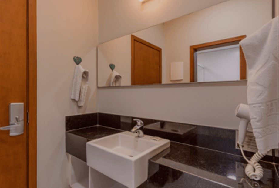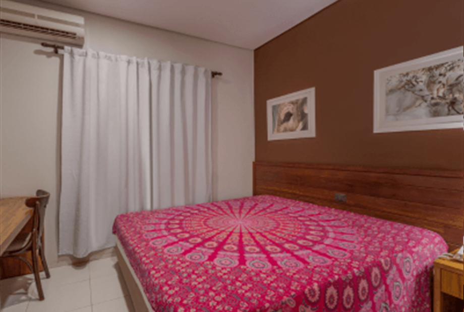 A acomodação dispõe de ar-condicionado, TV Smart com canais a cabo, banheiro privativo, cofre, frigobar, bancada de madeira, mesa de jantar...