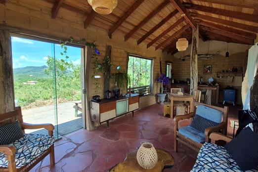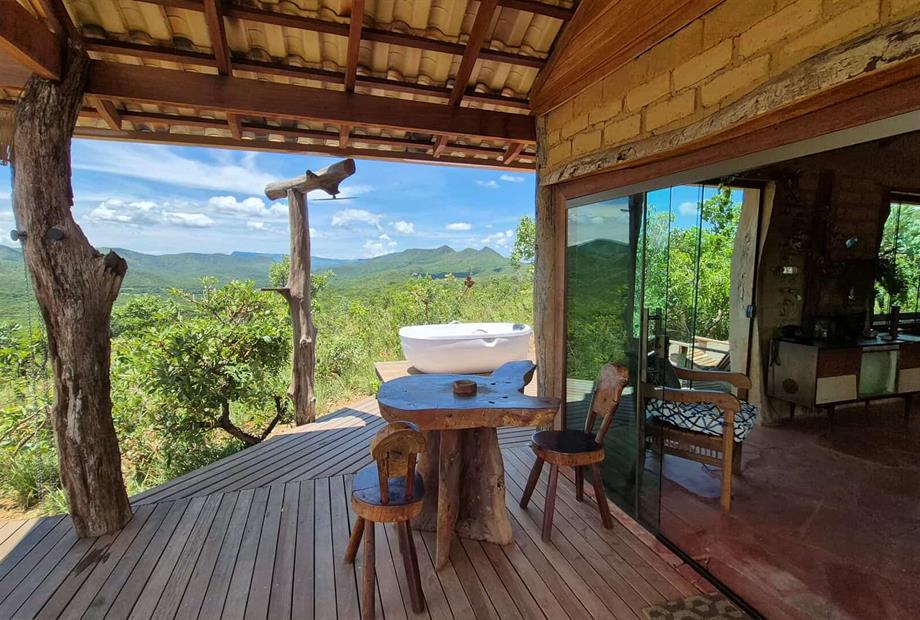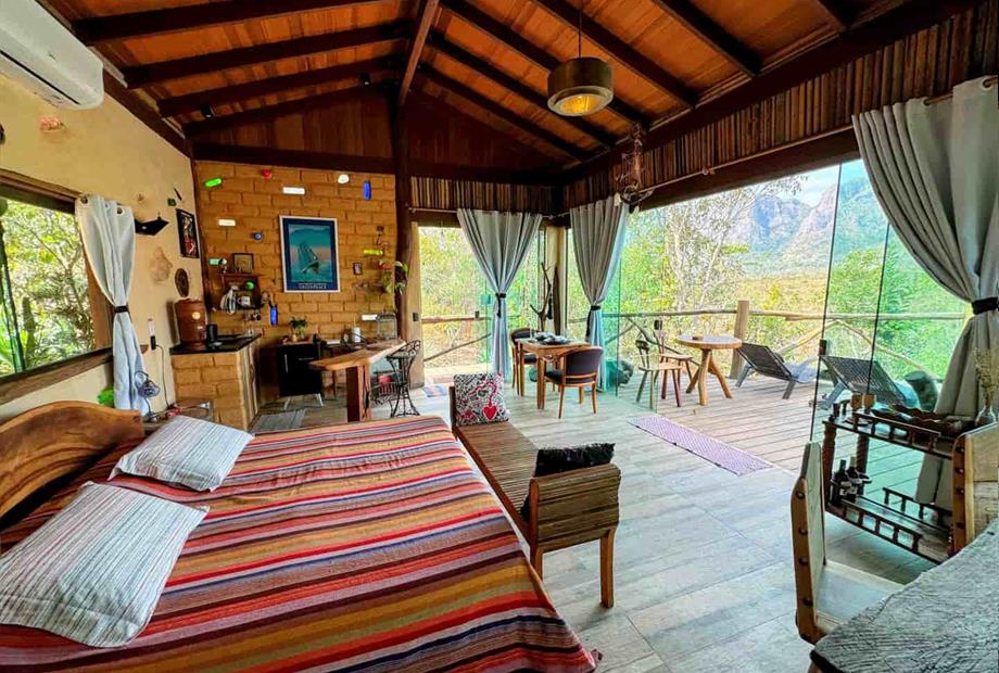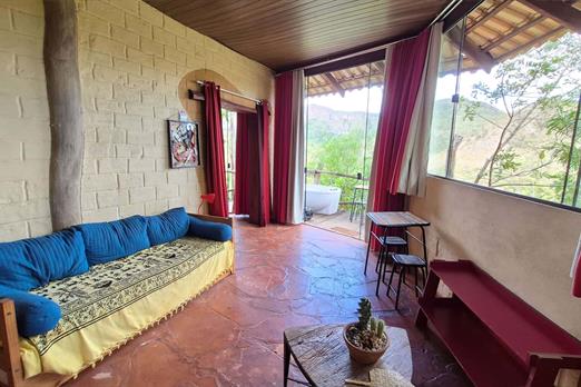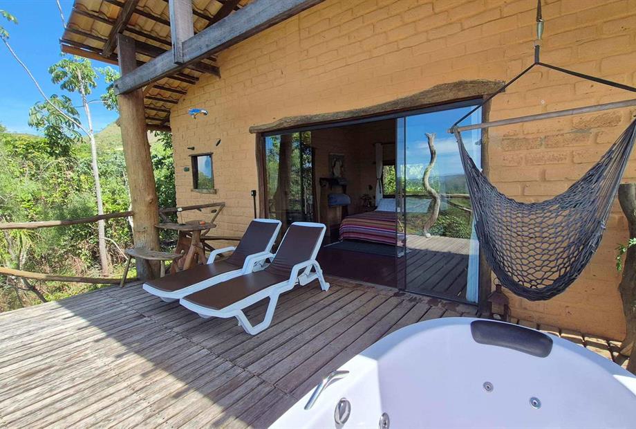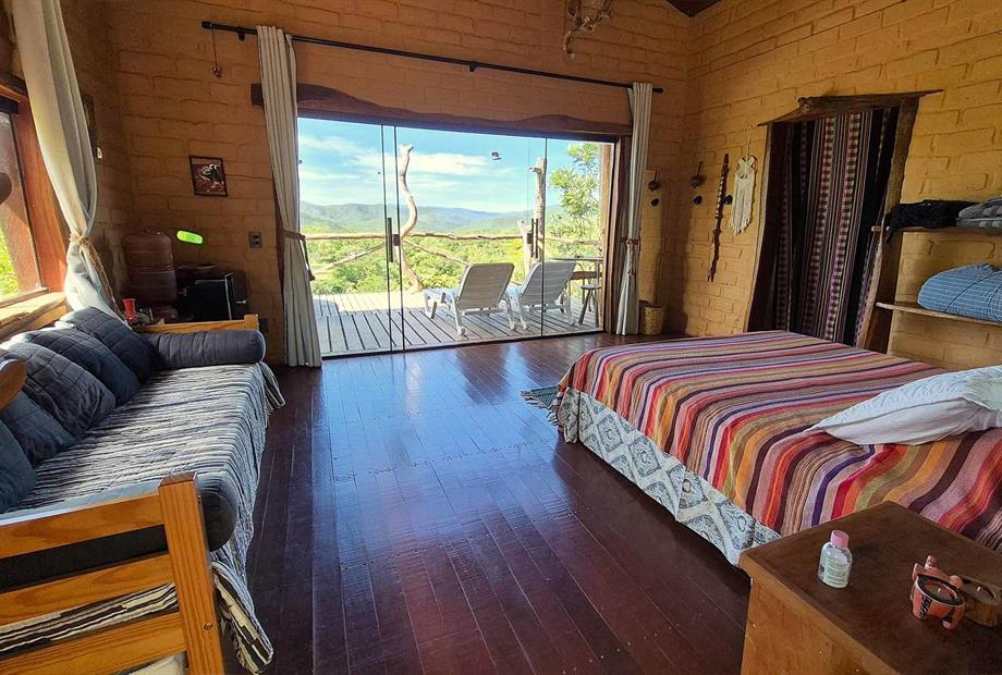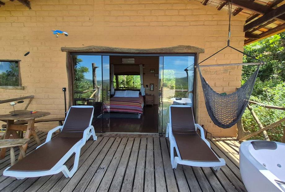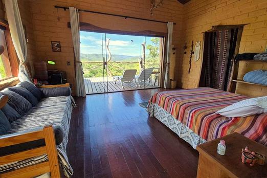 Com vista deslumbrante da Serra do Segredo e Vale Encantado. Possui 60m2 de área construída, com sala, cozinha com fogão e frigobar, wi-fi,...