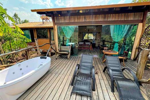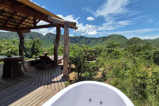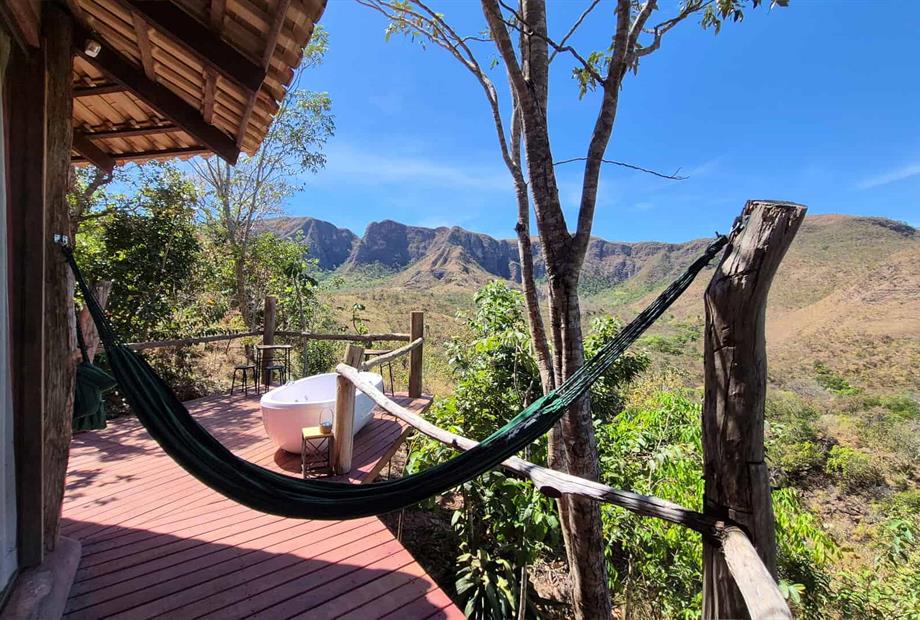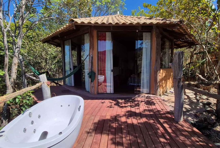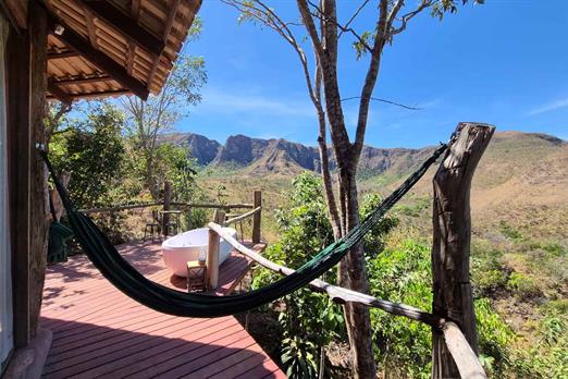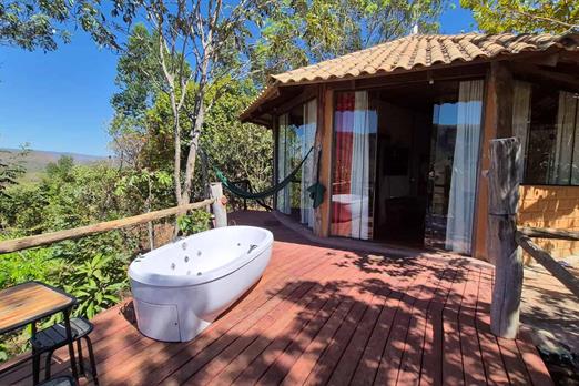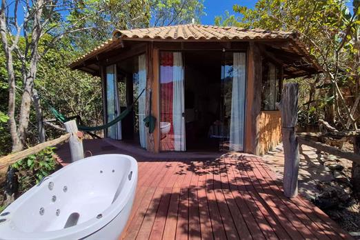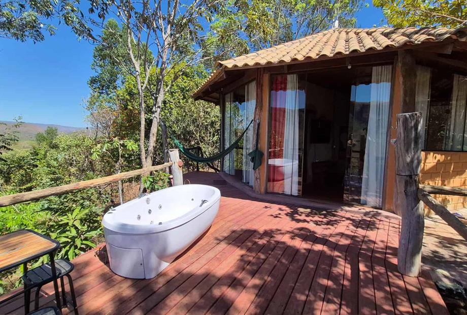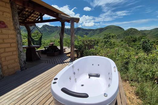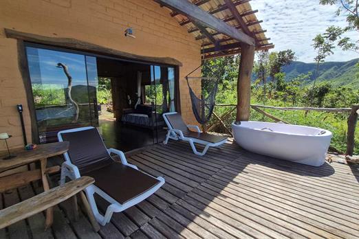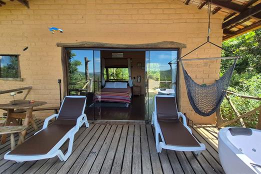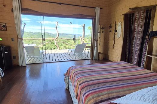 Com vista deslumbrante da Serra do Segredo e Vale Encantado. Possui 60m2 de área construída, com sala, cozinha com fogão e frigobar, wi-fi,...