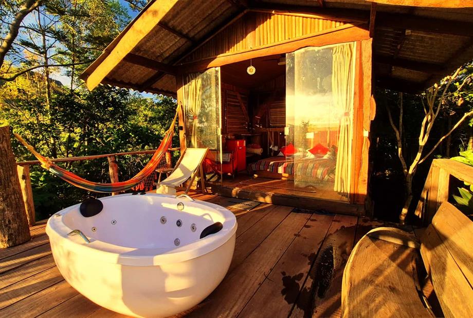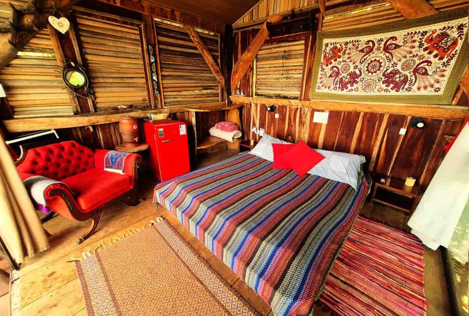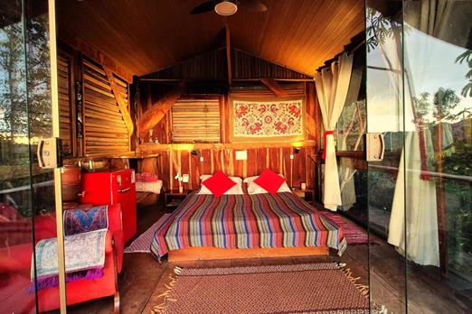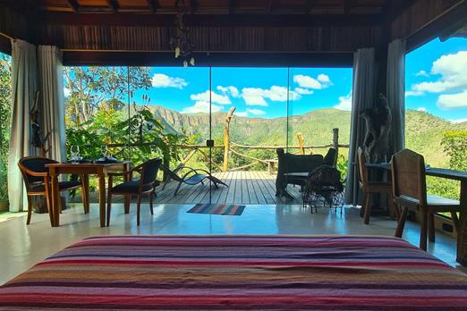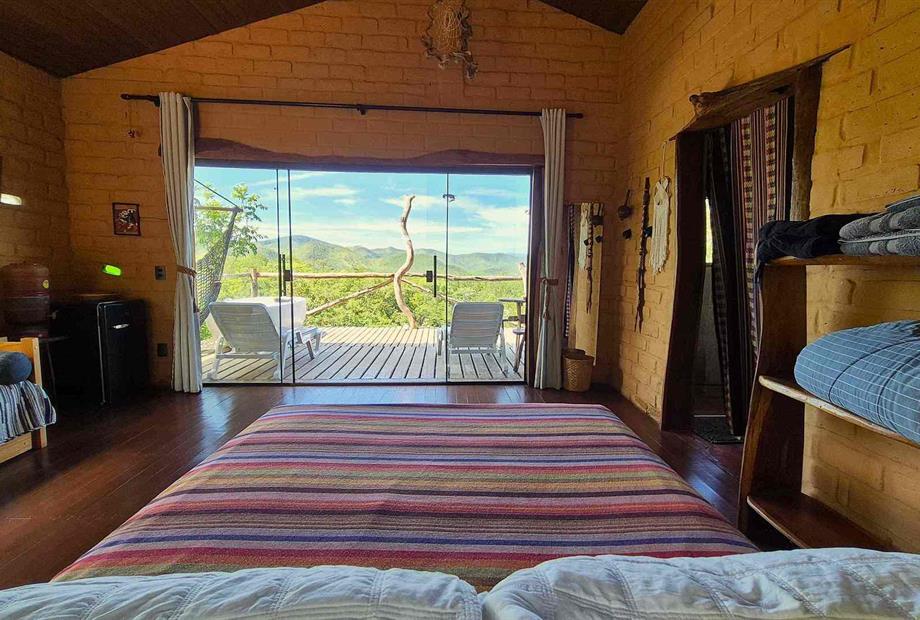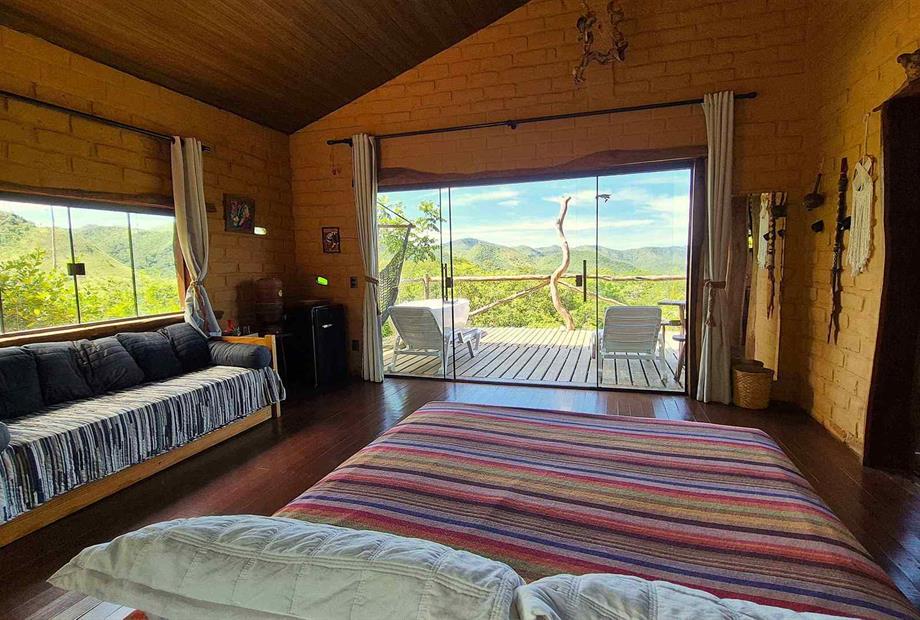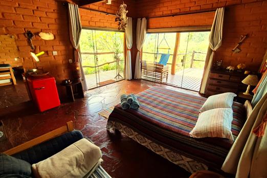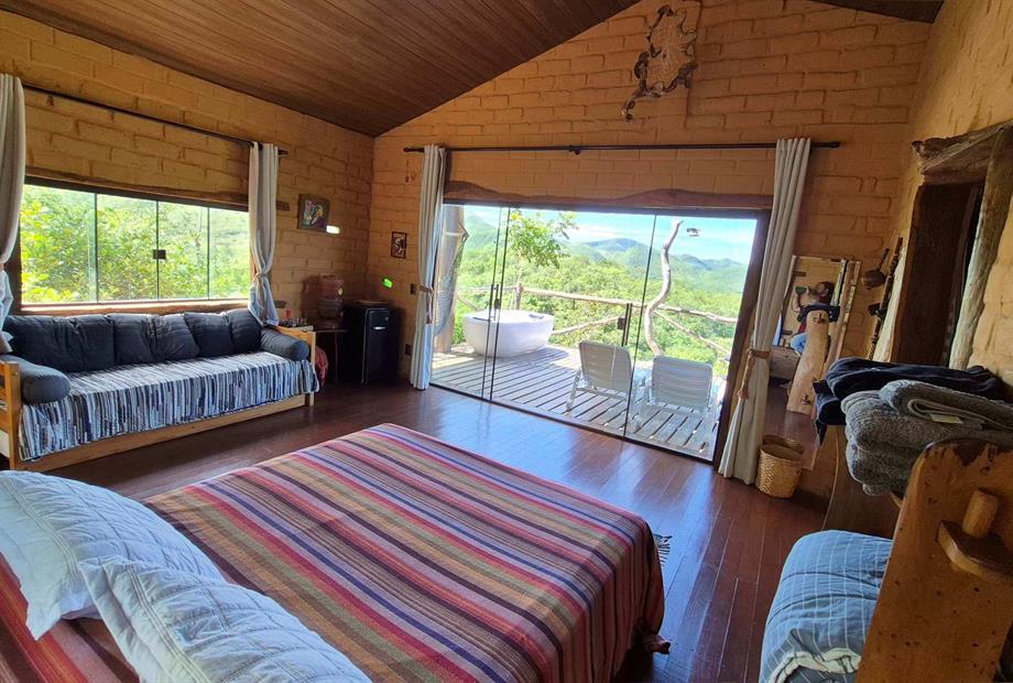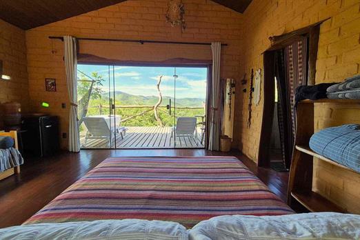 O Ninho do Amor possui uma cama de casal, janelas e porta de vidro, proporcionando uma vista única e espetacular para o vale do Rio São Migu...