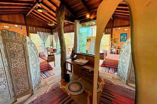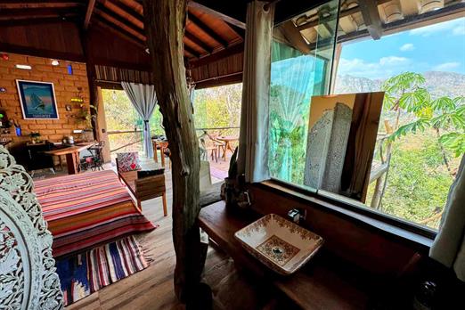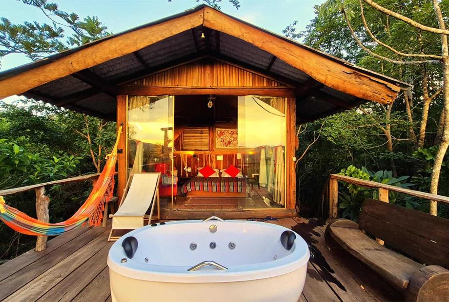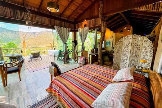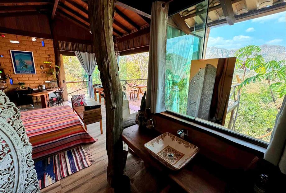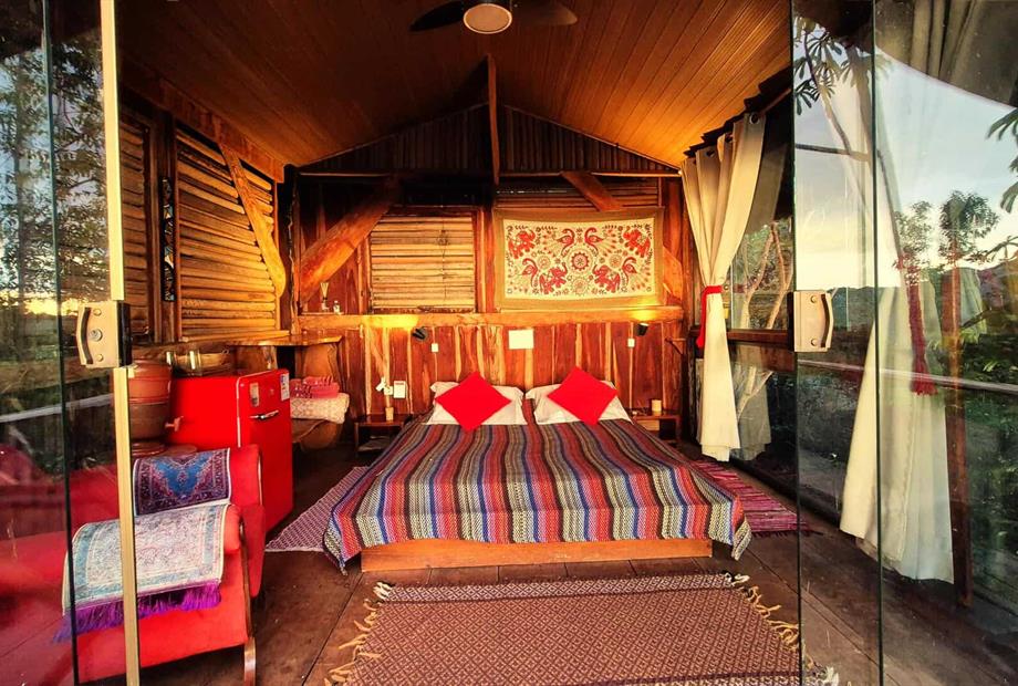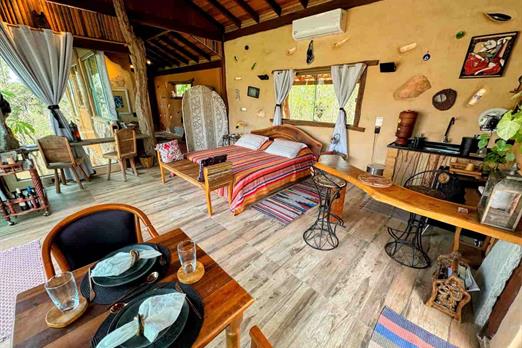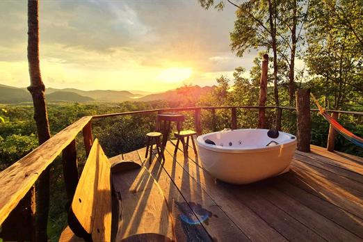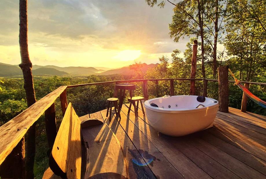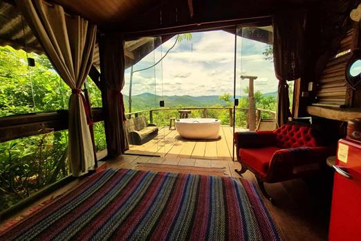 O Ninho do Amor possui uma cama de casal, janelas e porta de vidro, proporcionando uma vista única e espetacular para o vale do Rio São Migu...