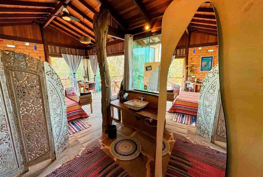 Ver detalhe do quartoTARIFA TOP GUARÁ A tarifa TOP da Eco Pousada Toca do Guará para estadias mínimas a partir de duas noites, oferece uma experiência confortável e acessível. A pousada está situada em Alto Paraíso de Goiás, a 18 km do Vale da Lua. Detalhes da Tarifa TOP: Estadia mínima: a partir de 2 noites Destaques da Pousada: Cozinha coletiva completa: Os hóspedes têm acesso a uma cozinha totalmente equipada, ideal para preparar suas próprias refeições. Liberdade para trazer alimentos: Os hóspedes podem trazer seus próprios gêneros alimentícios para consumo durante a estadia. A pousada também oferece outras comodidades, como estacionamento privativo gratuito, Wi-Fi gratuito, e todos os chalés com varanda e vista para a montanha