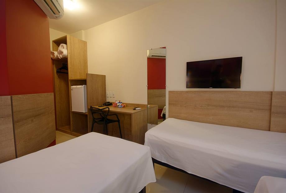 Nosso quarto possui três camas de solteiro, e é projetado para proporcionar uma estada confortável e funcional, você encontrará um ambiente...