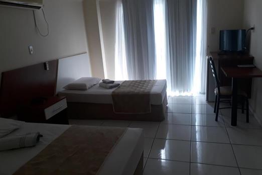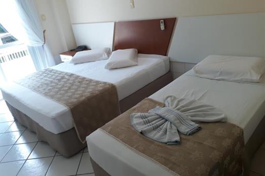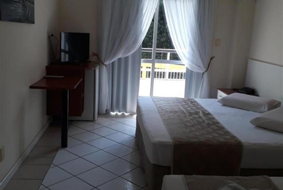 Quarto casal composto por uma cama king ou duas camas de solteiro, quarto confortável, amplo e com varanda.