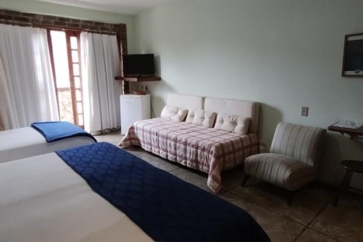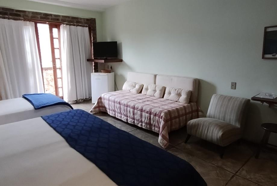 Você viverá uma experiência especial neste quarto que possui uma cama de casal , uma cama de solteira e uma cama turca acomodando até 04 pes...