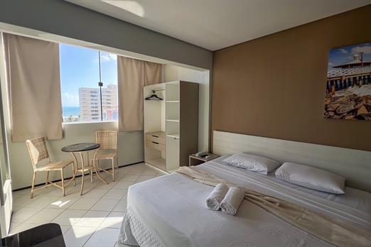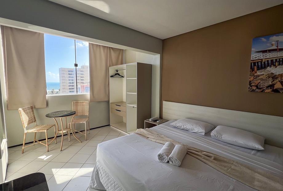Acomodando até 3 pessoas, a Suíte Frente-Mar oferece um espaço amplo, confortável e com localização privilegiada com vista para o mar. Amb...