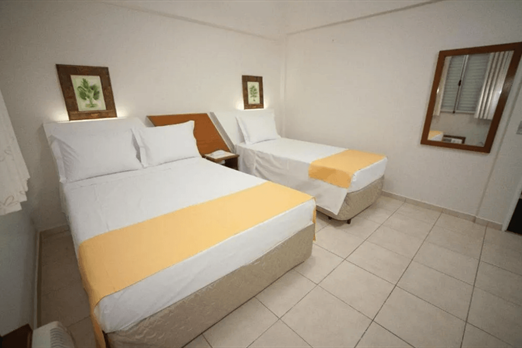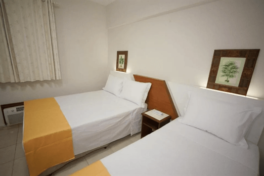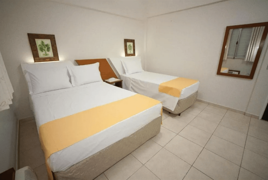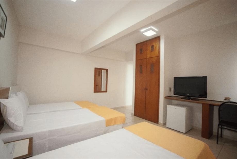 Acomodação projetada para comportar até três pessoas em três camas de solteiro, equipada com ar condicionado, frigobar, tv de tela plana à c...