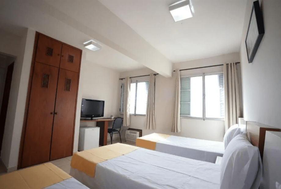 Acomodação projetada para comportar até duas pessoas em duas camas de solteiro, equipada com ar condicionado, frigobar, tv de tela plana à c...