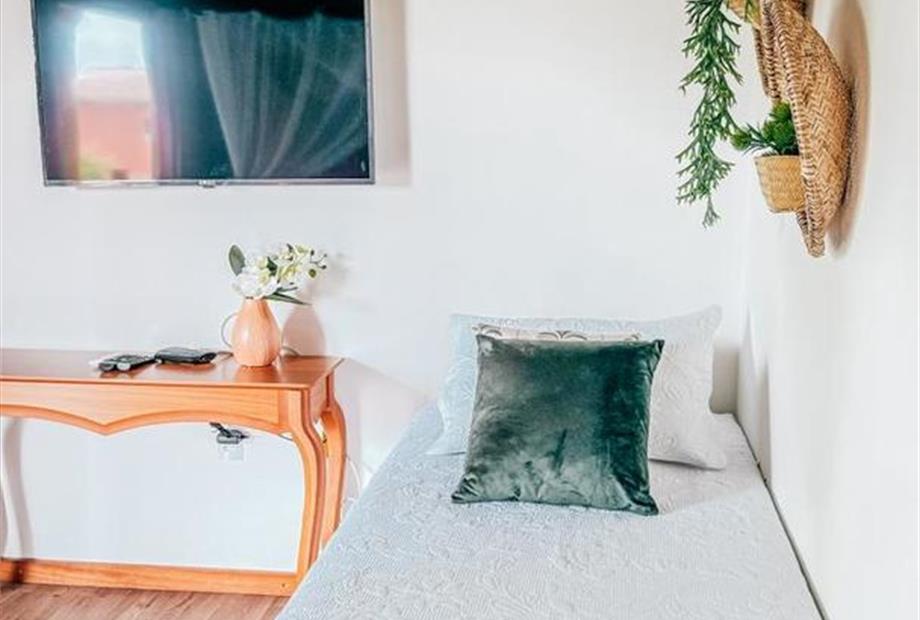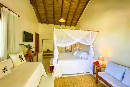 Esta charmosa suíte oferece todo o conforto necessário para uma estadia inesquecível. Elegante e bem equipada, conta com ar-condicionado par...
