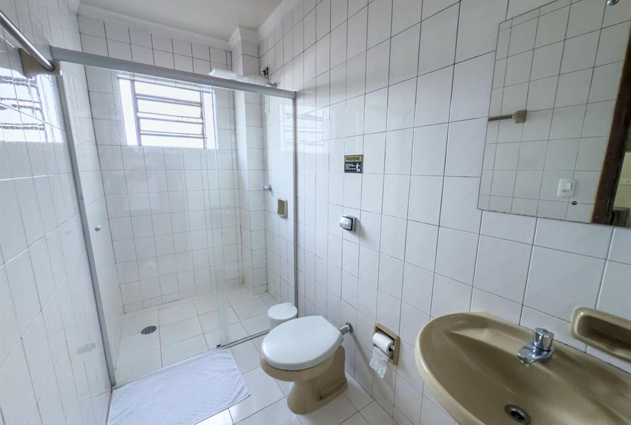 Apartamento possui 1 cama de casal + 1 cama de solteiro, ar condicionado e frigobar.