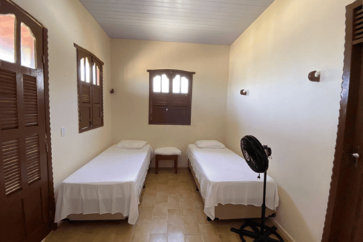 Essa acomodação dispõe de um quarto com uma cama queen, ar condicionado e banheiro, um outro quarto com duas camas de solteiro, ventilador e...