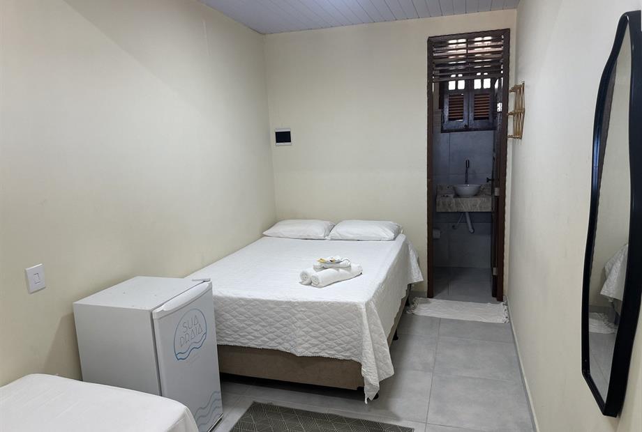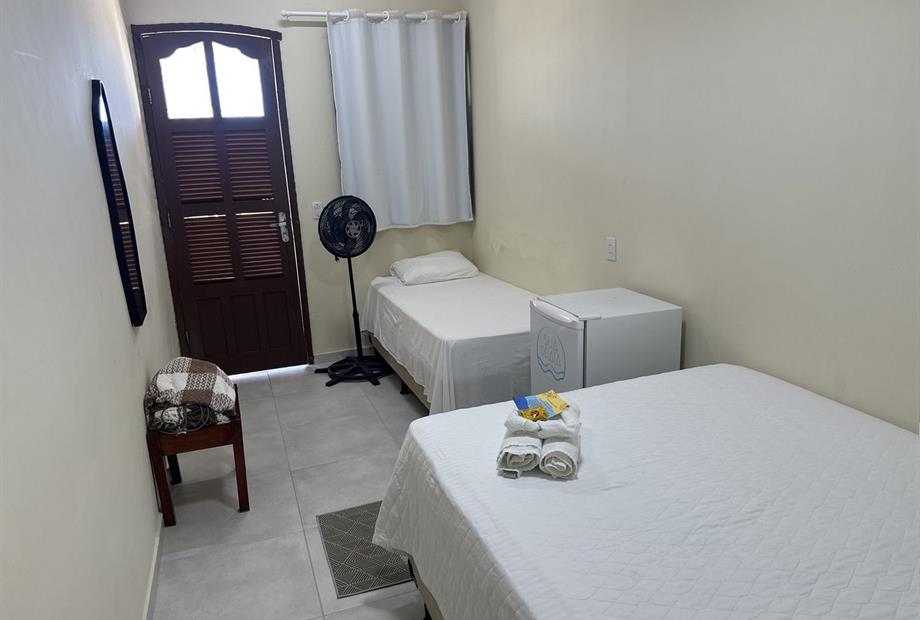 Essa acomodação dispõe de uma cama de casal e uma cama solteiro ambos com ventilador, banheiro, frigobar, varanda e vista para o mar. Dispo...
