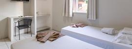 Este quarto possui 1 cama de casal e 3 camas de solteiro.