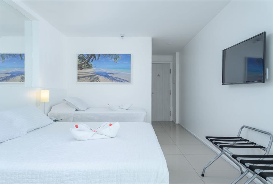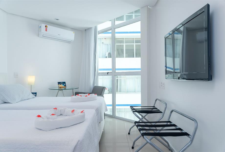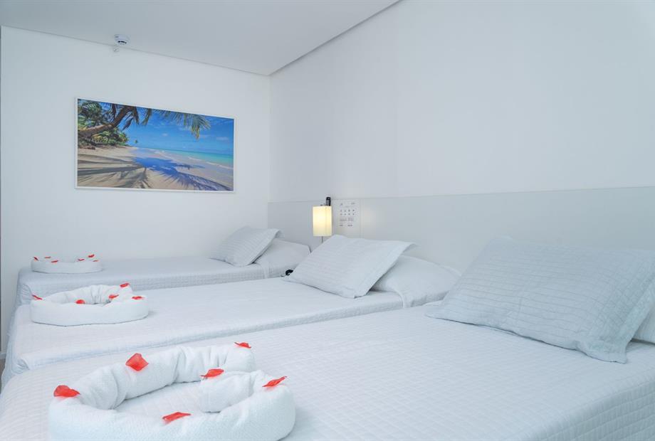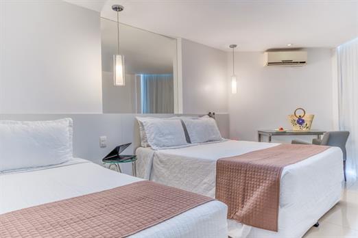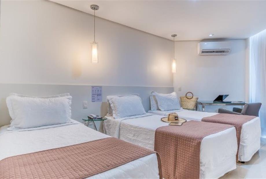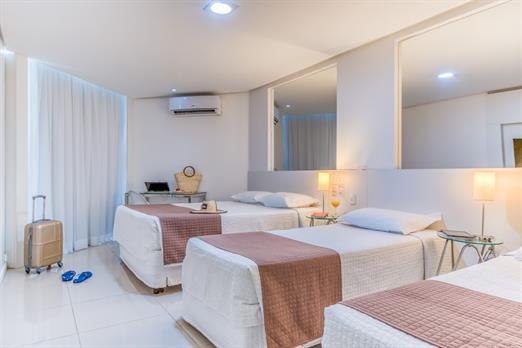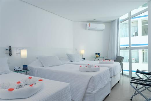 A categoria Premium Triplo pode dispor de 01 Cama de Casal + 01 Cama de solteiro ou 03 camas de solteiro, e não possui vista para o mar. Os...