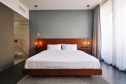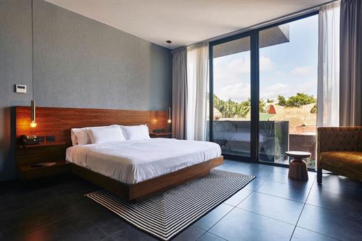 Habitación con una cama king size, Smart TV, aire acondicionado, baño privado con ducha, cafetera, ventilador, caja de seguridad, secadora d...