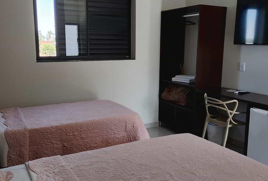 Com capacidade para até três pessoas, este quarto oferece ar-condicionado, TV dcom canais a cabo, banheiro privativo e duas camas. Uma opção...