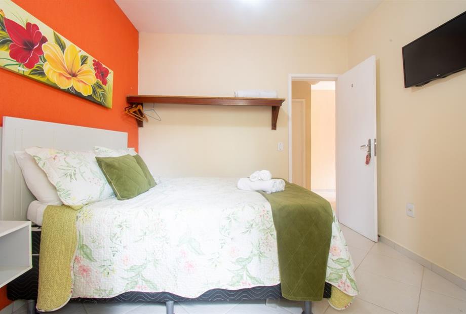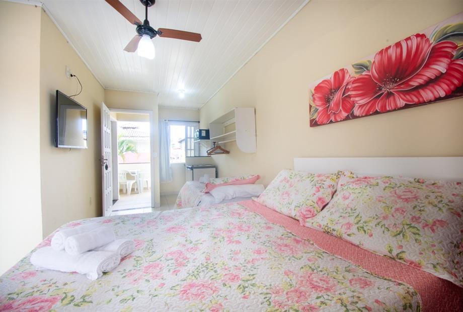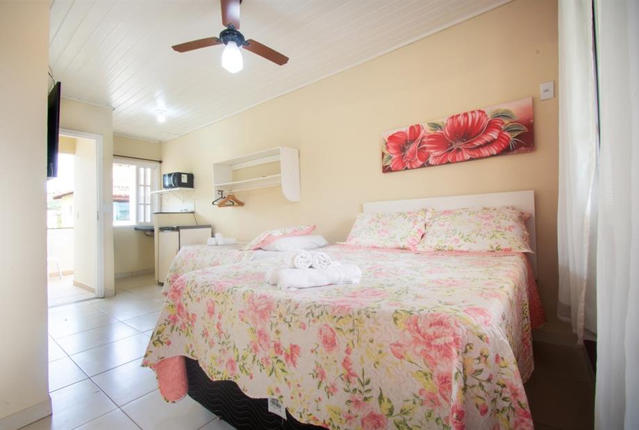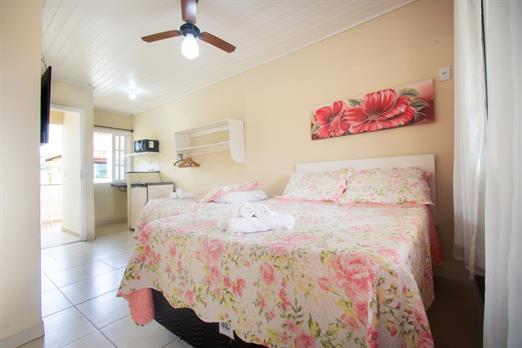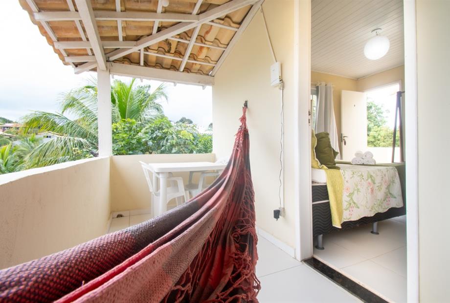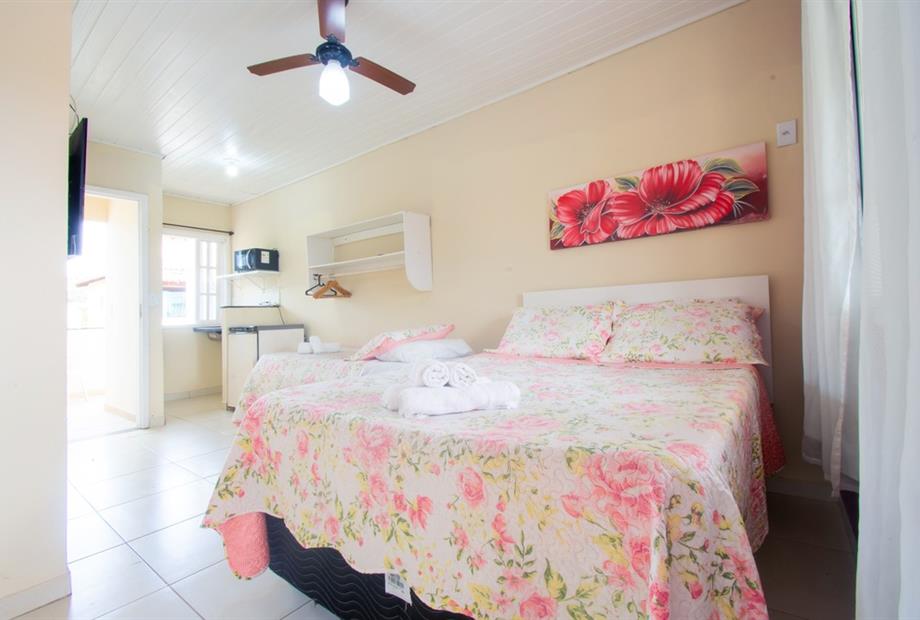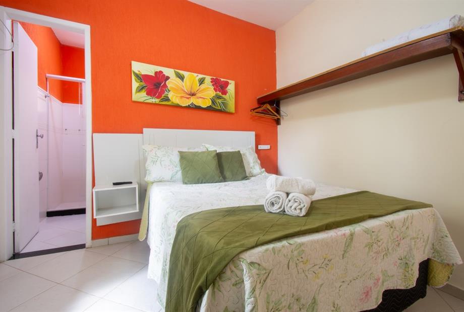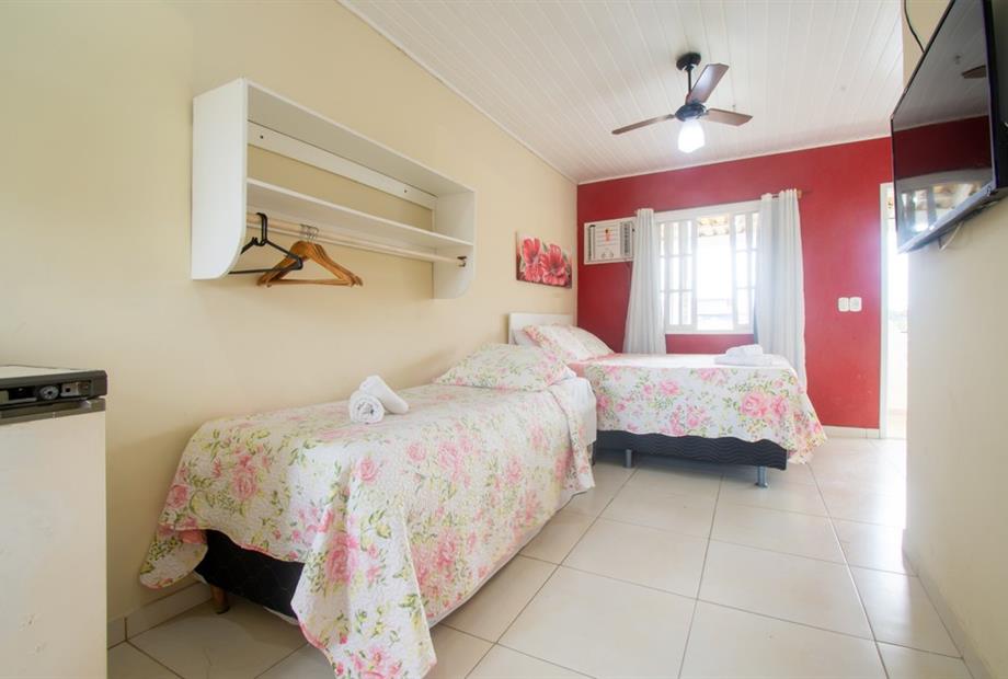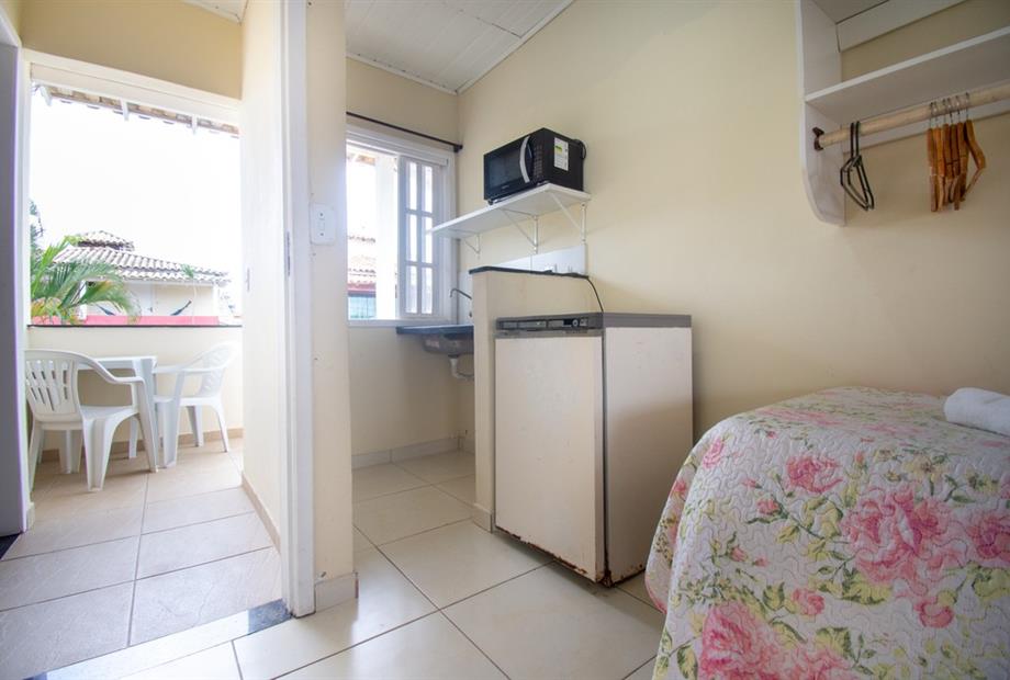 O estúdio dispõe de ar-condicionado, entrada privativa, varanda com vista para o lago e banheiro privativo com chuveiro.