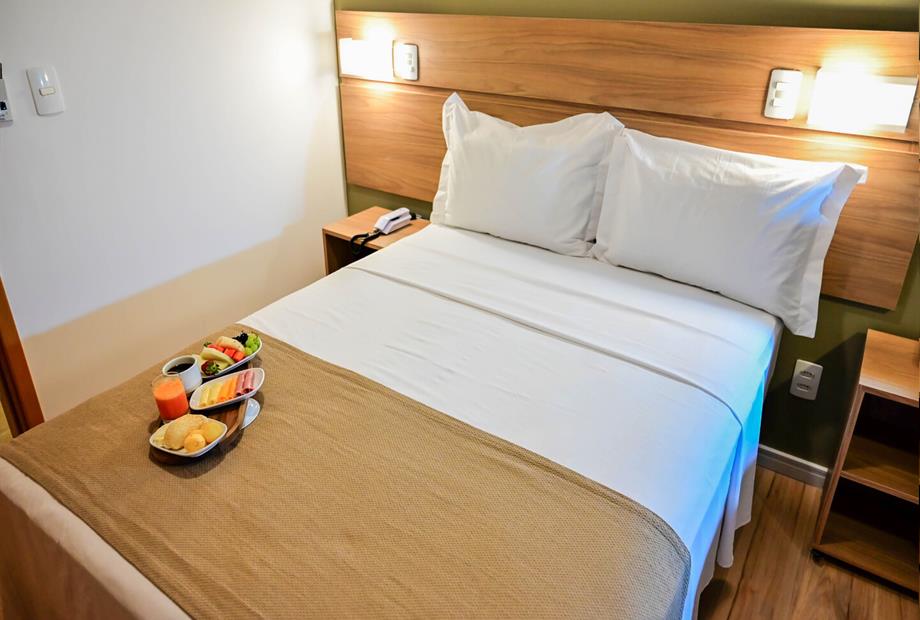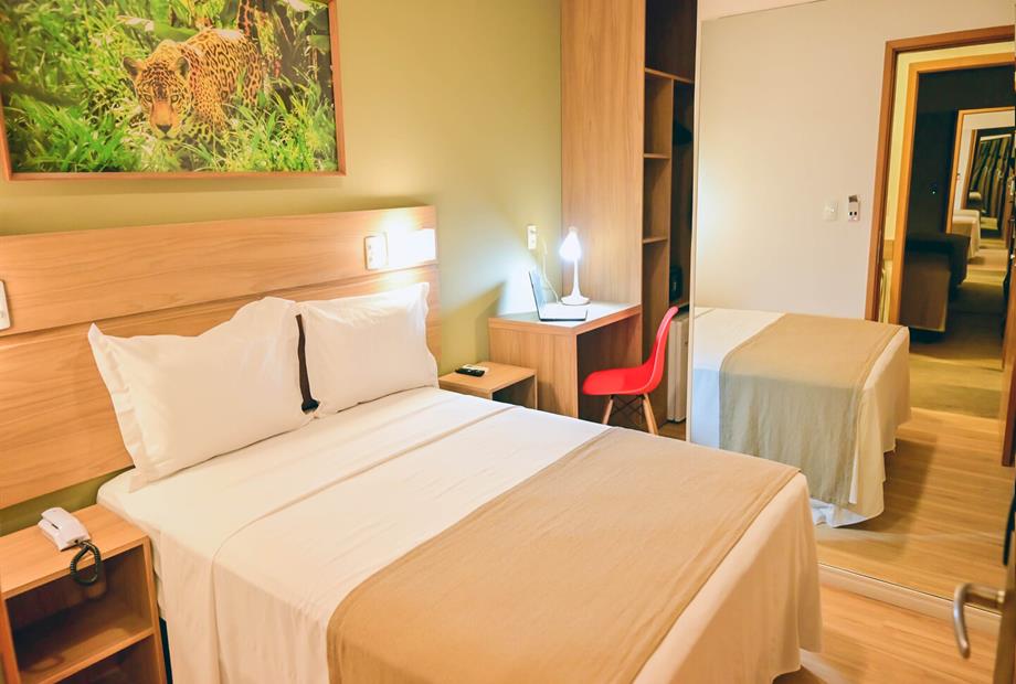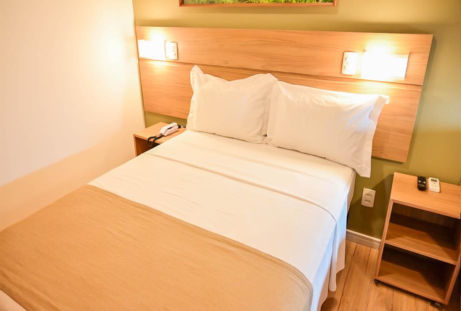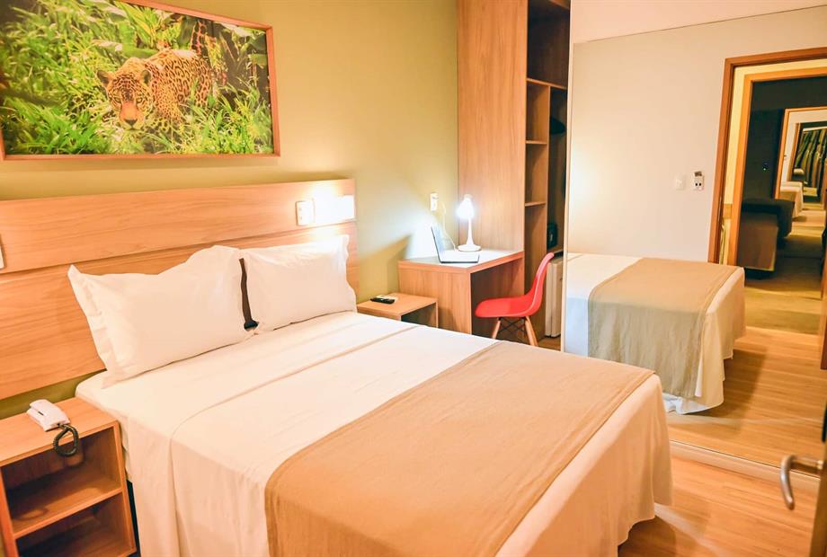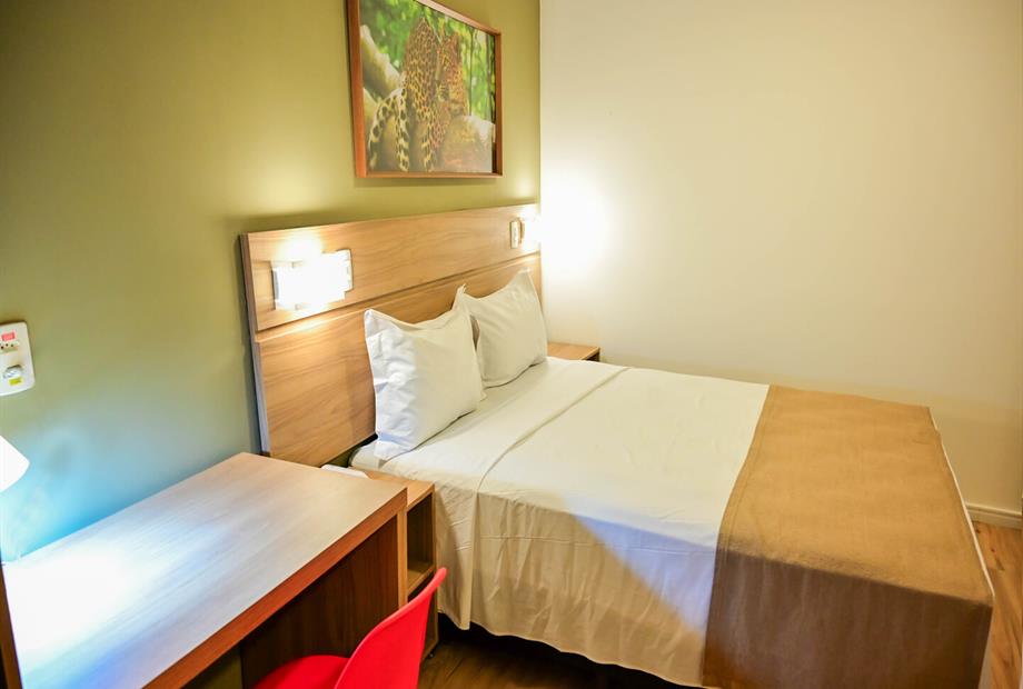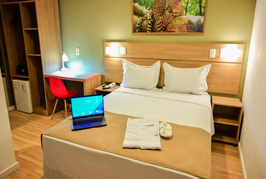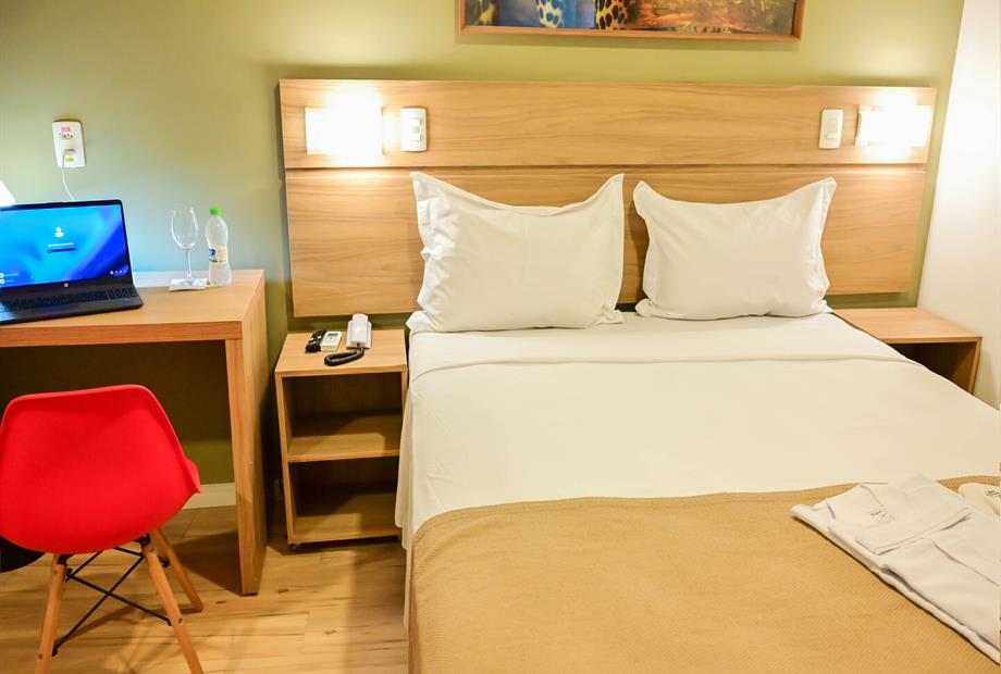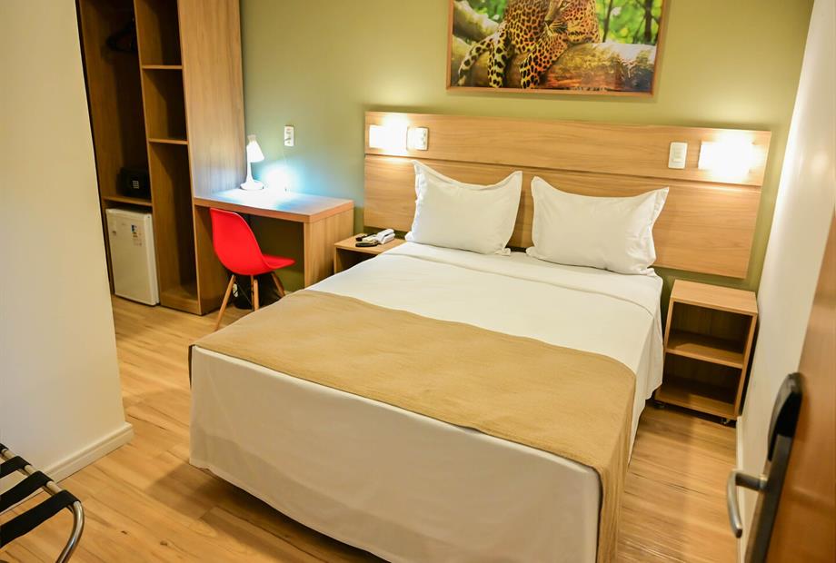 Possui uma cama casal , wi-fi, ar-condicionado, chuveiro (ducha), guarda-roupa aberto, cofre, estação de trabalho, secador de c... (ver mais)