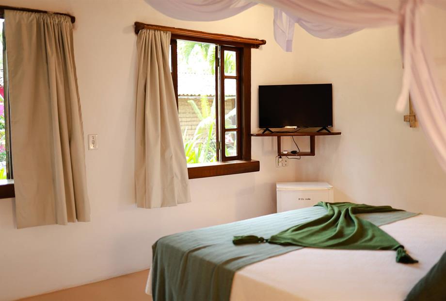 Quarto confortável e funcional, ideal para 1 ou 2 pessoas. Conta com cama confortáveis, banheiro privativo, TV, frigobar e Wi-Fi gratuito.