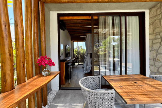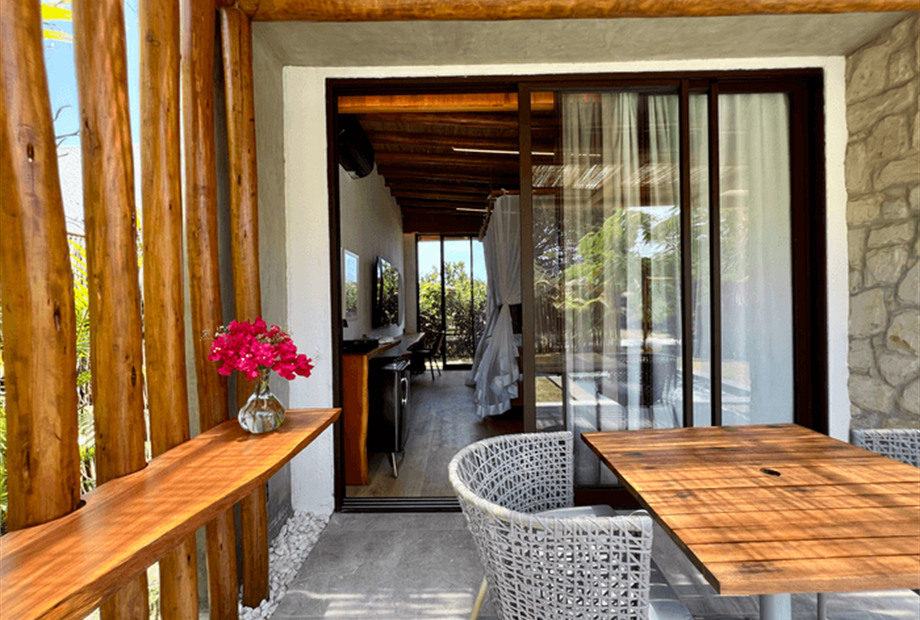 A Suíte Luxo conta com chuveiro interno e externo (conexão a jardim privativo ao banheiro), ambos com aquecimento, terraço com mesa e cadeir...