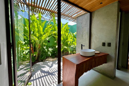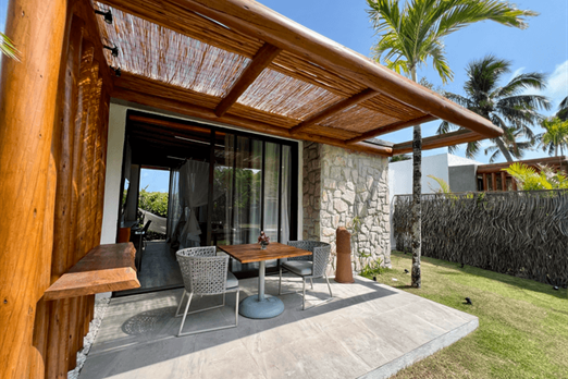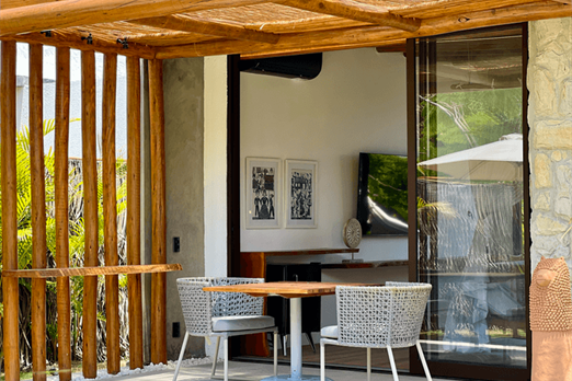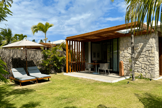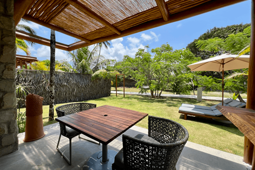 O Bangalô Jardim conta com chuveiro interno e externo (conexão a jardim privativo ao banheiro), ambos com aquecimento, terraço com mesa e ca...