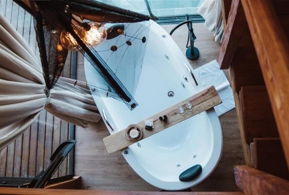 Entrada (Check-in)*: a partir das 18:00 - Partida (Check-out)*: até as 15:00. Estrutura: mezanino com cama king size, enxoval premium de cam...