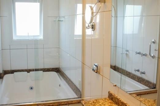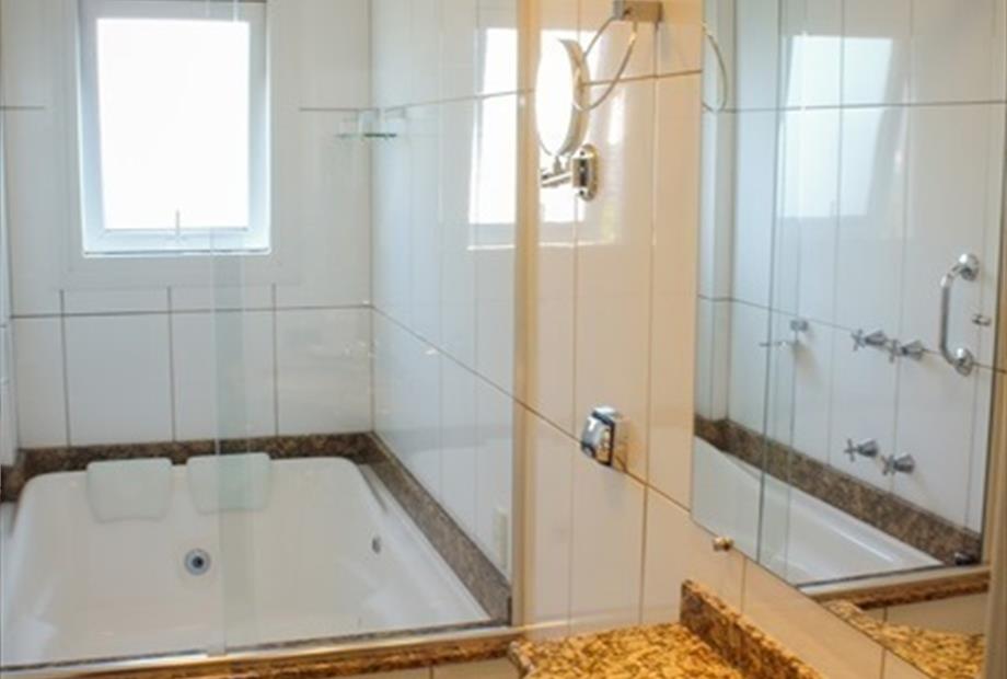Suíte com 27 m², com dois ambientes, antessala e quarto, 02 TVs LCD, 02 ar split, banheira de hidromassagem, escalda-pés , chaleira com chás...