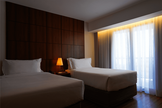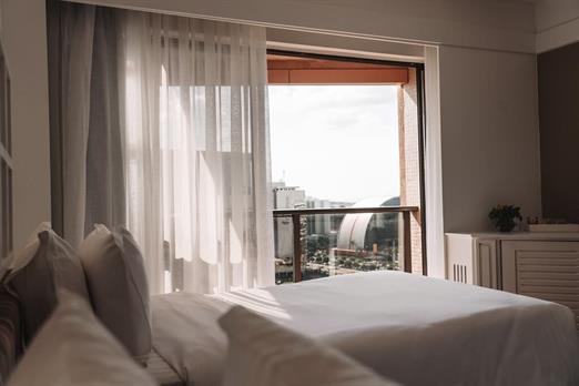 Apartamentos com 45m², com bancada para trabalho, TV LCD de 40", lençóis com 300 fios. Todos os quartos possuem varanda, com duas camas de s...