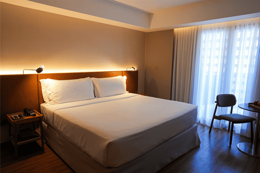 Apartamentos com 45m², com bancada para trabalho, TV LCD de 40", lençóis com 300 fios. Todos os quartos possuem varanda, com uma cama de cas...