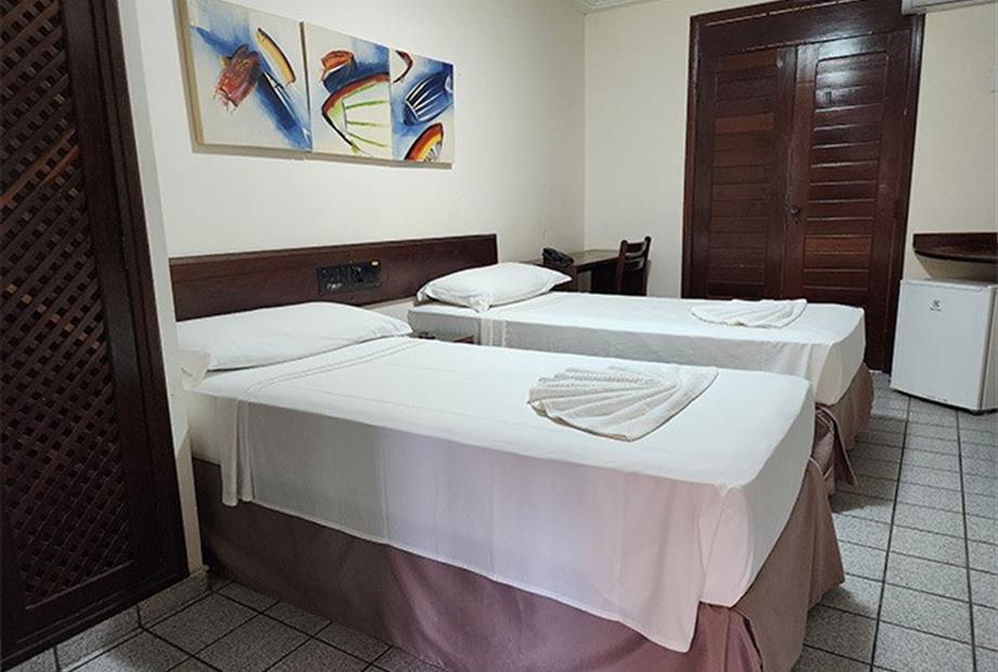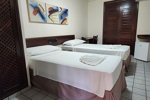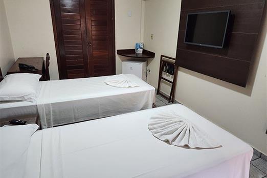 Este quarto possui uma cama de casal king size ou 2 camas de solteiro, ar condicionado Split , TV LCD de 26 polegadas, internet wi-fi, frig...