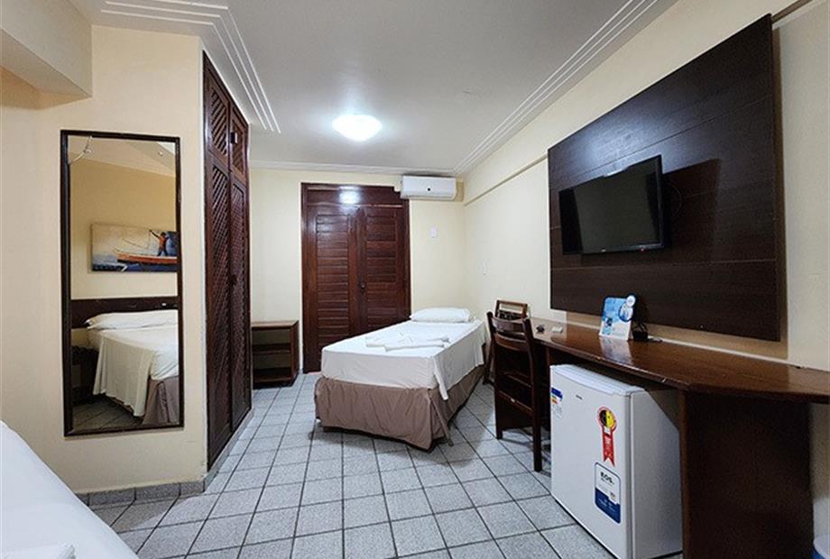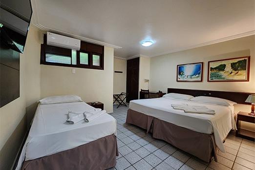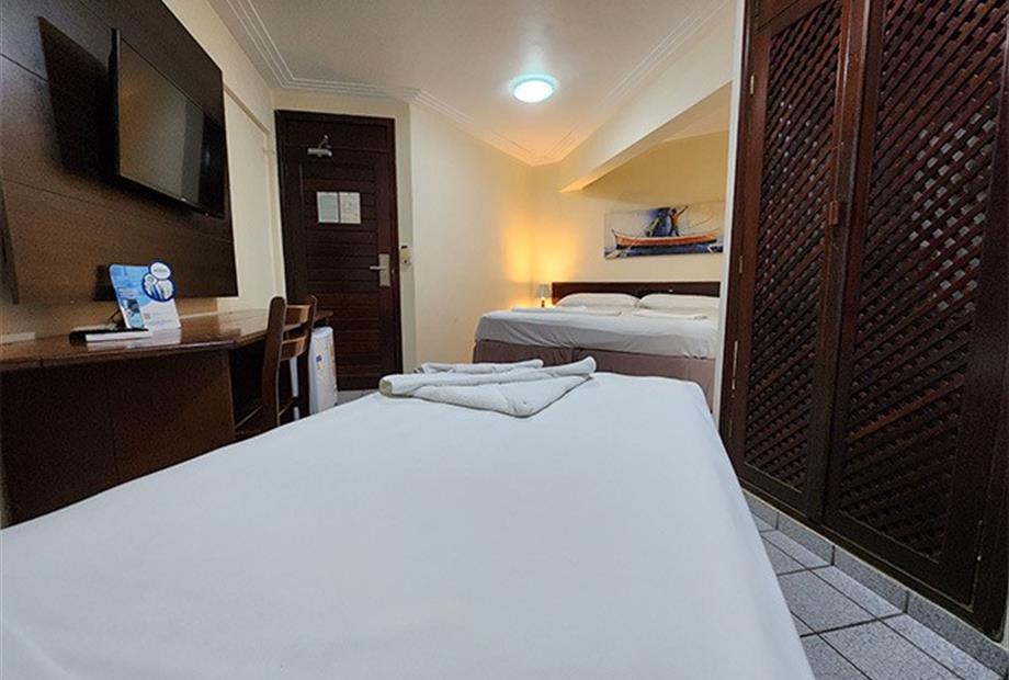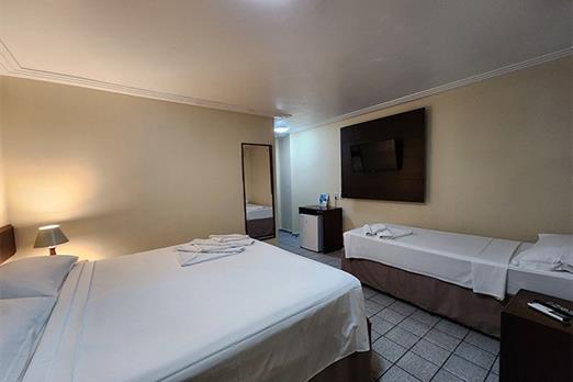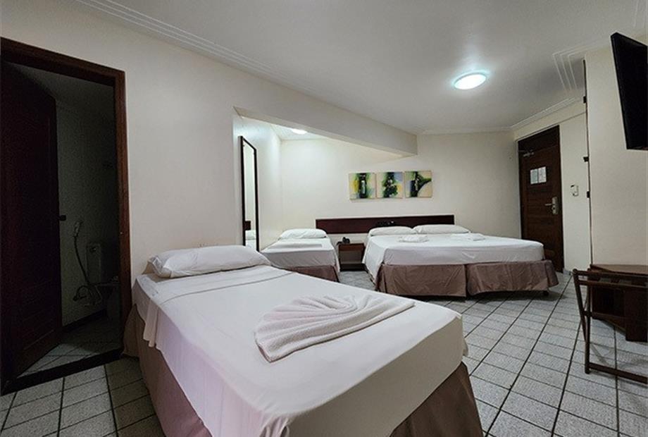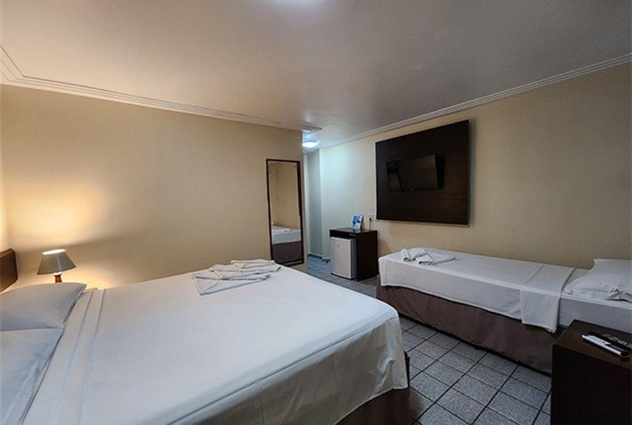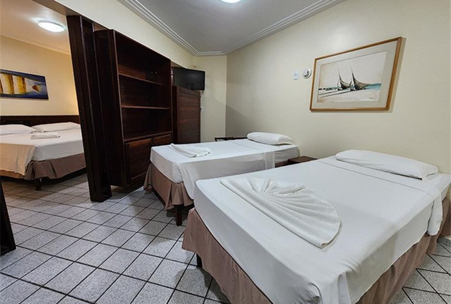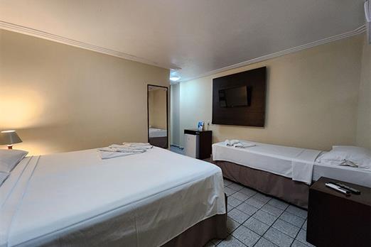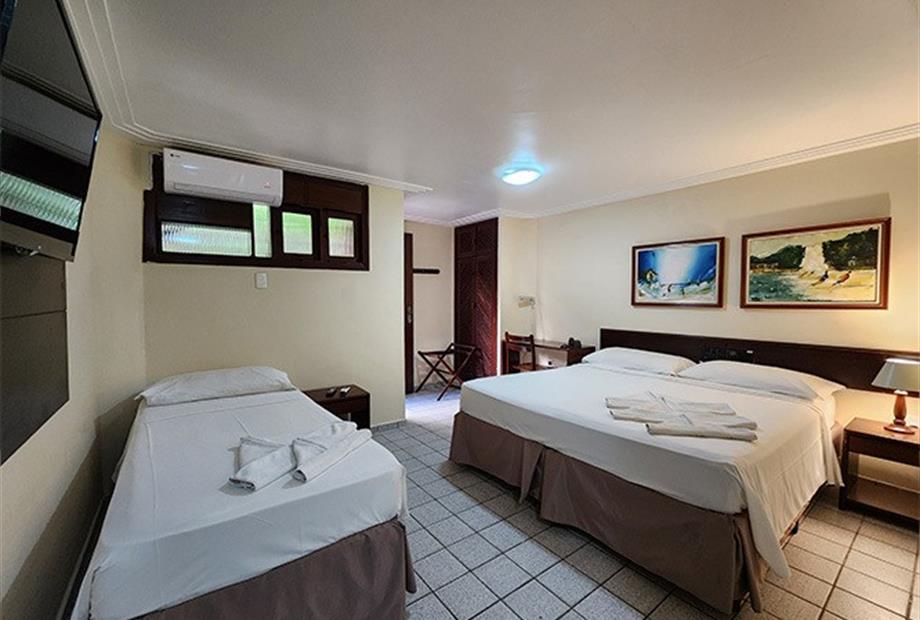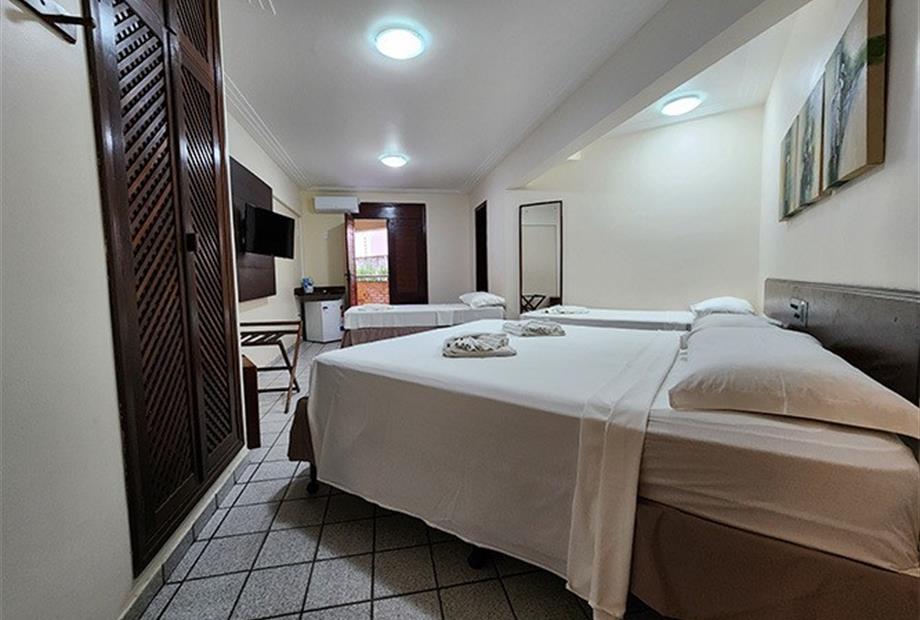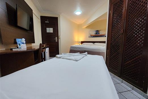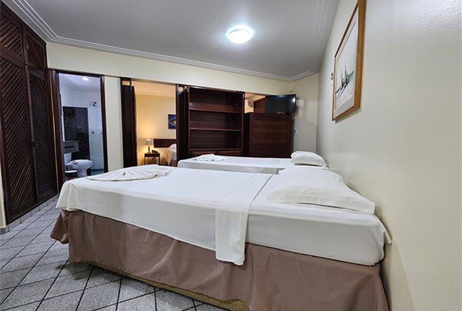 Este quarto possui uma cama de casal king size + 2 camas de solteiro, ar condicionado Split , TV LCD de 26 polegadas, internet wi-fi, frigo...