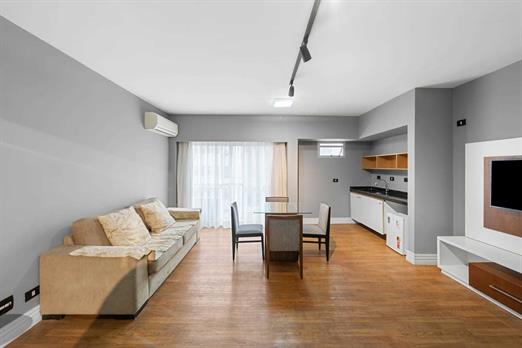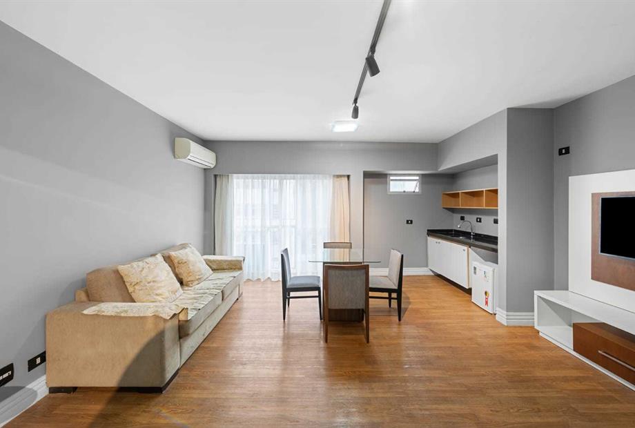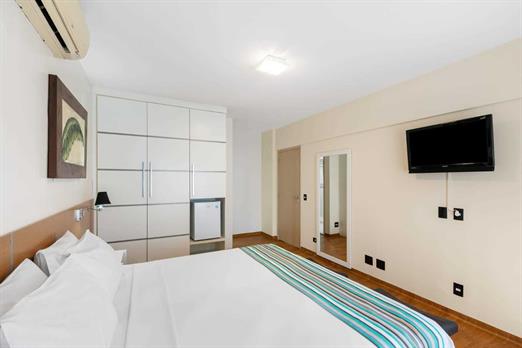 Apartamento com 49m² com 01 cama Queen Size, composto com ante sala, mini mesa, pia e sofá. Equipado com TV LCD 32 a cabo, ar condicionado,...