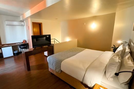 Mesa de trabalho Telefone Frigobar Ar-condicionado split Secador de cabelos Cofre digital Tam. Quarto: 24 m² Tam. Cama: King Size Mais com...