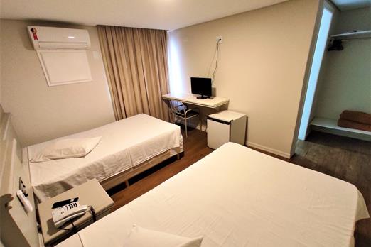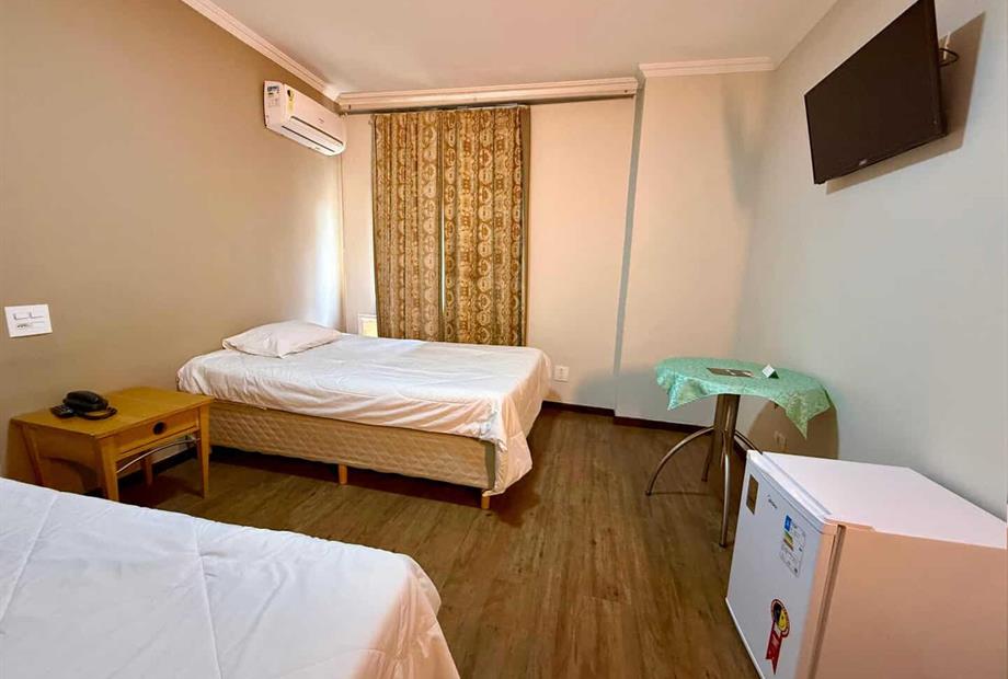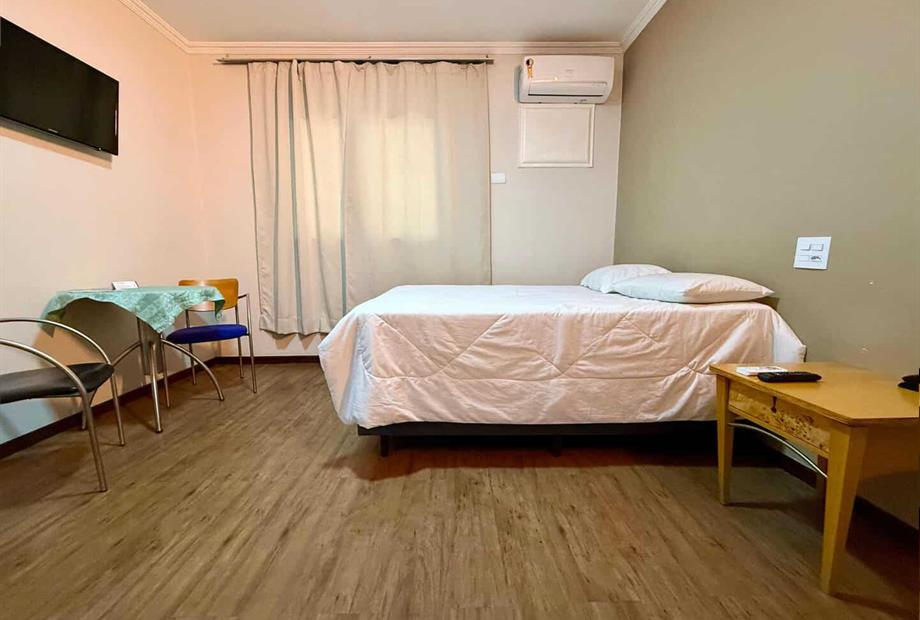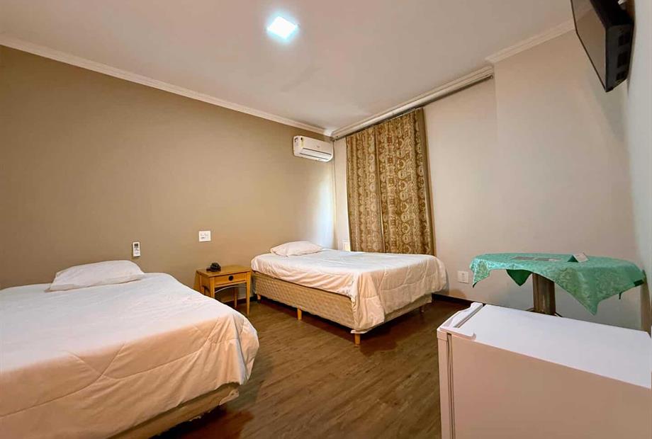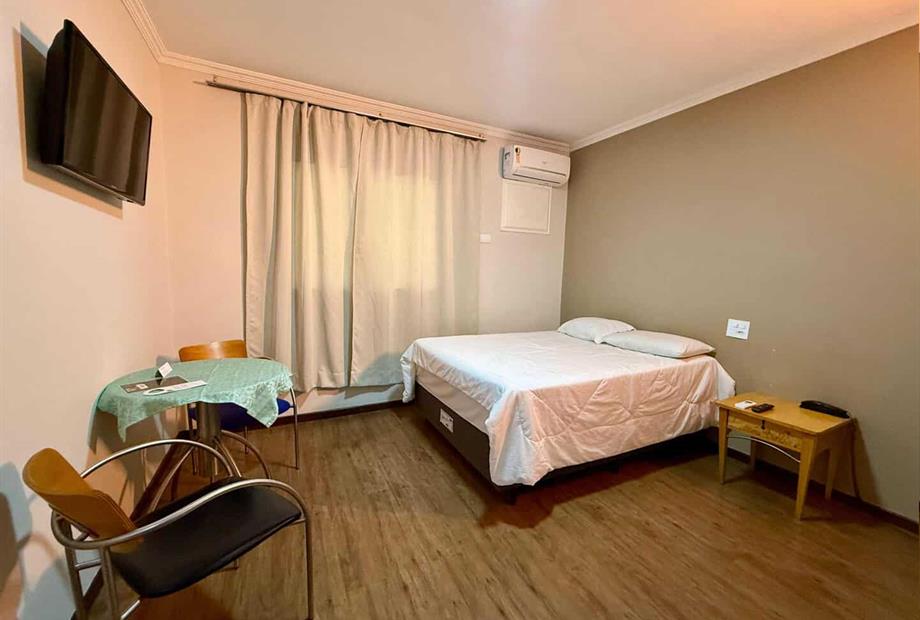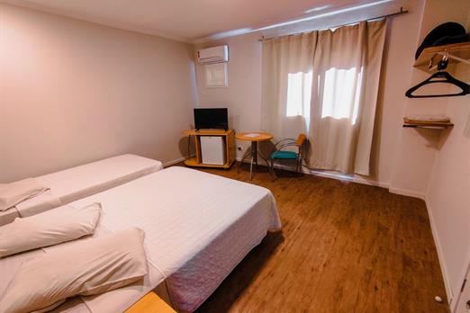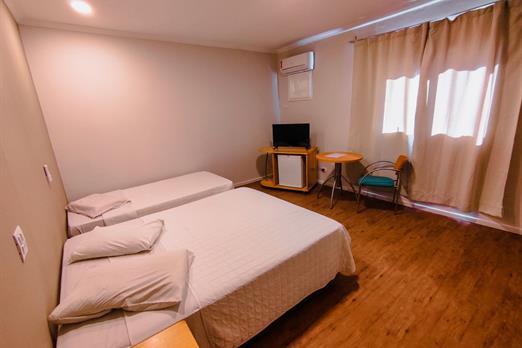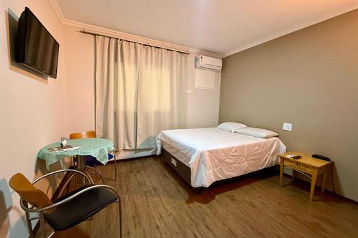 Ver detalhe do quartoDIÁRIA COM CAFÉ (NÃO REEMBOLSÁVEL) 👉 Garanta agora sua hospedagem com 20% OFF na PROMO DE FÉRIAS! Promoção ativa até 01 de fevereiro de 2026. Desconto já aplicado na tarifa. O que está incluso: Café da manhã delicioso: Comece o dia com energia e disposição. Internet Wi-Fi: Conecte-se sempre que precisar, sem preocupações. Chegada e Partida: Check-in: A partir das 14h. Deixe suas malas e aproveite! Check-out: Até 12h. Aproveite ao máximo seu último dia. Crianças: Cortesia: Uma criança de até 6 anos se hospeda gratuitamente no mesmo apartamento dos pais. Estacione seu veículo com segurança. Veículos comuns: R$ 40,00 por dia. Motos: R$ 30,00 por dia. Caminhonetes: R$ 60,00 por dia. Quartos para não fumantes: Mantenha o ambiente agradável para todos. A taxa de higienização para fumantes é de R$ 230,00 por dia.
