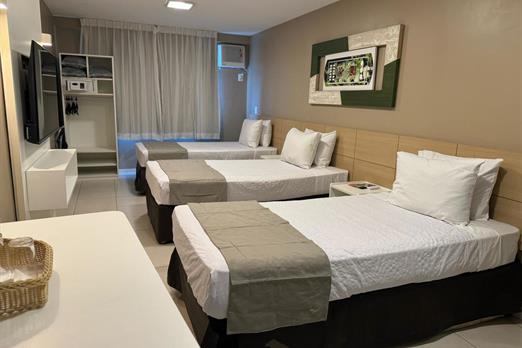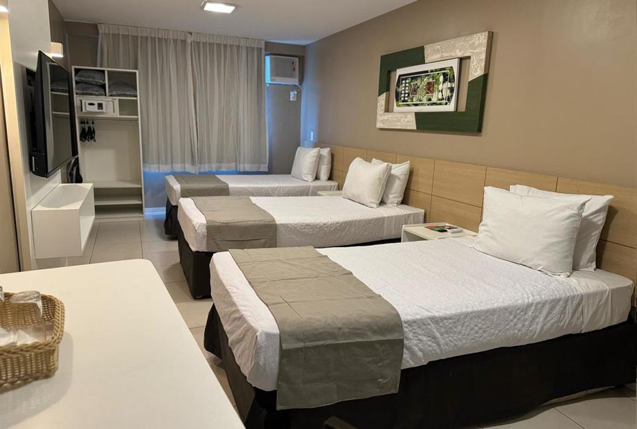 ACOMODA ATÉ 03 PESSOAS, PODENDO SER EM 01 CAMA CASAL + 01 CAMA SOLTEIRO OU 03 CAMAS DE SOLTEIRO. NOSSO HOTEL CONTA COM APARTAMENTOS EQUIPADO...