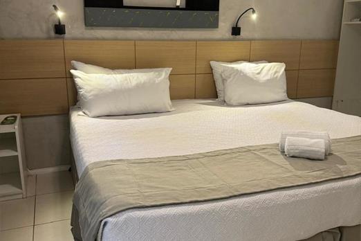 APARTAMENTOS EQUIPADOS COM CAMA BOX KING SIZE, SMART TV COM CANAIS A CABO, AR CONDICIONADO, COFRE DIGITAL, FRIGOBAR, TELEFONE E ACESSO A INT...
