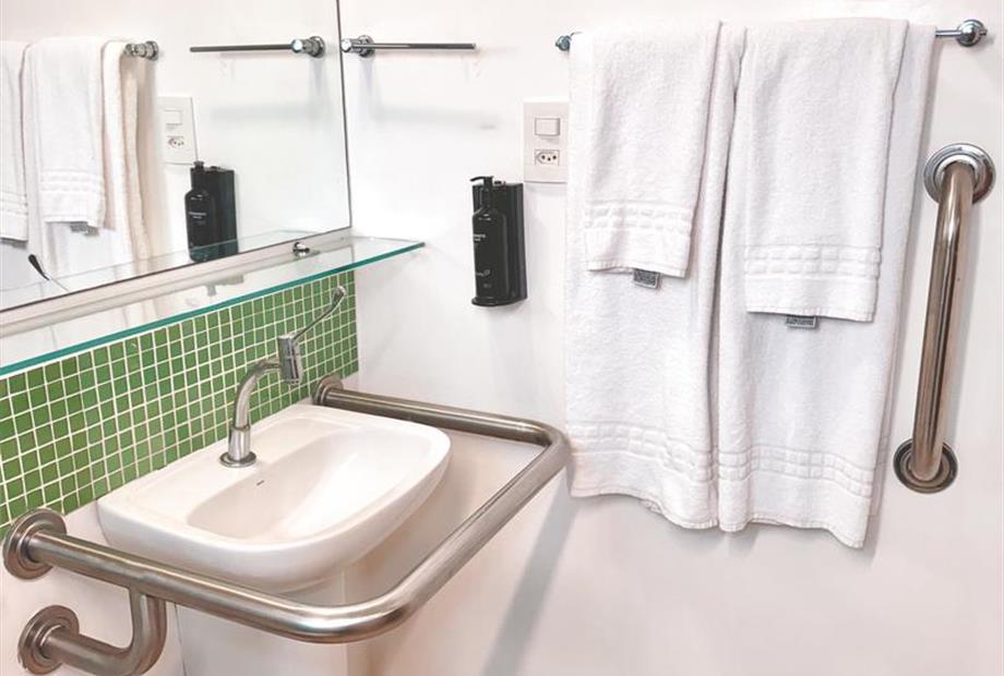 Suítes espaçosas e adaptadas para atender com conforto e segurança hóspedes com mobilidade reduzida localizada no piso térreo. Nosso hotel c...
