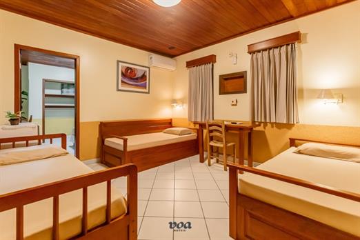 Essa categoria possui uma cama de casal e duas de solteiro para receber sua família com muito carinho e conforto. O quarto Standard Família...