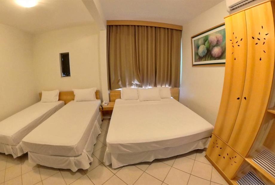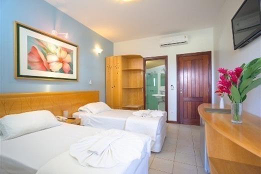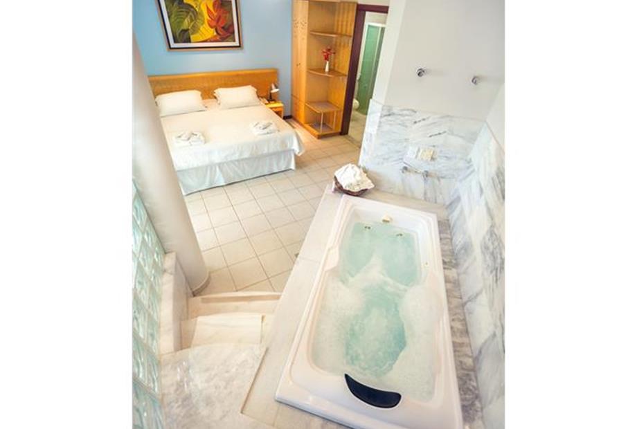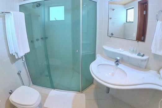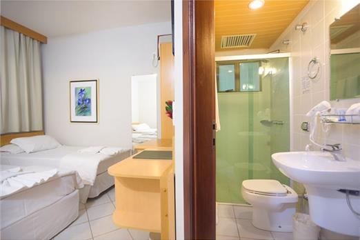Apartamento climatizado, TV LED 32", minibar, cofre, telefone, banheiro com ducha aquecida, secador de cabelo e sem sacada.